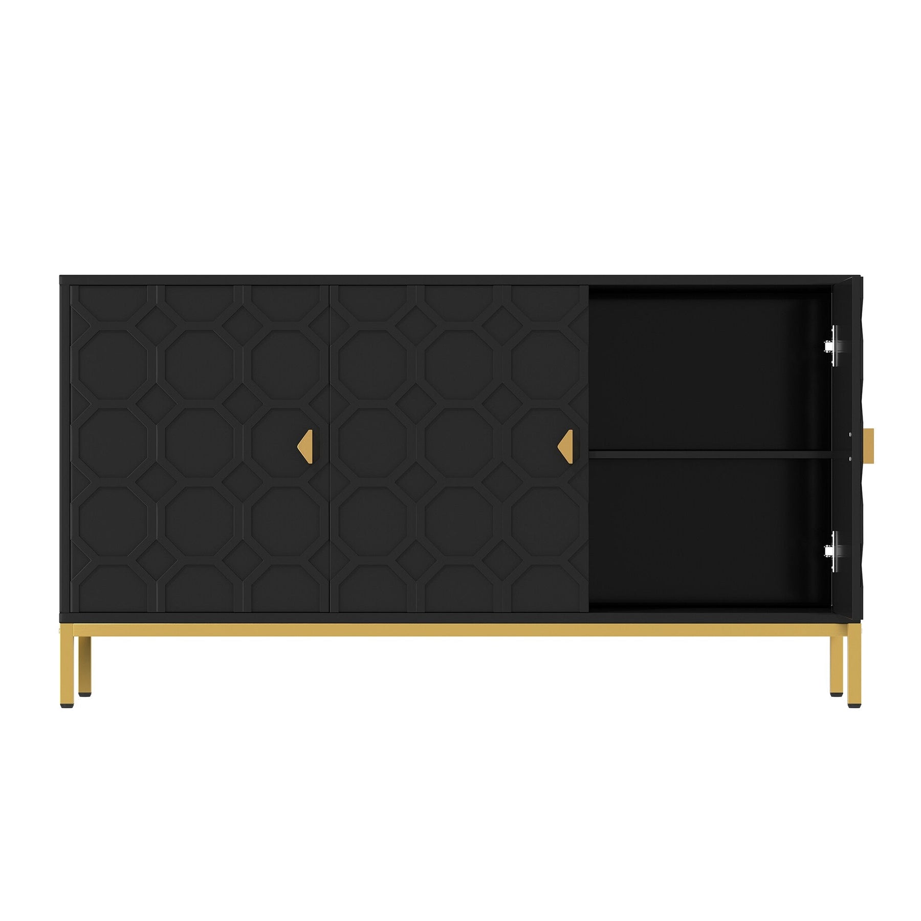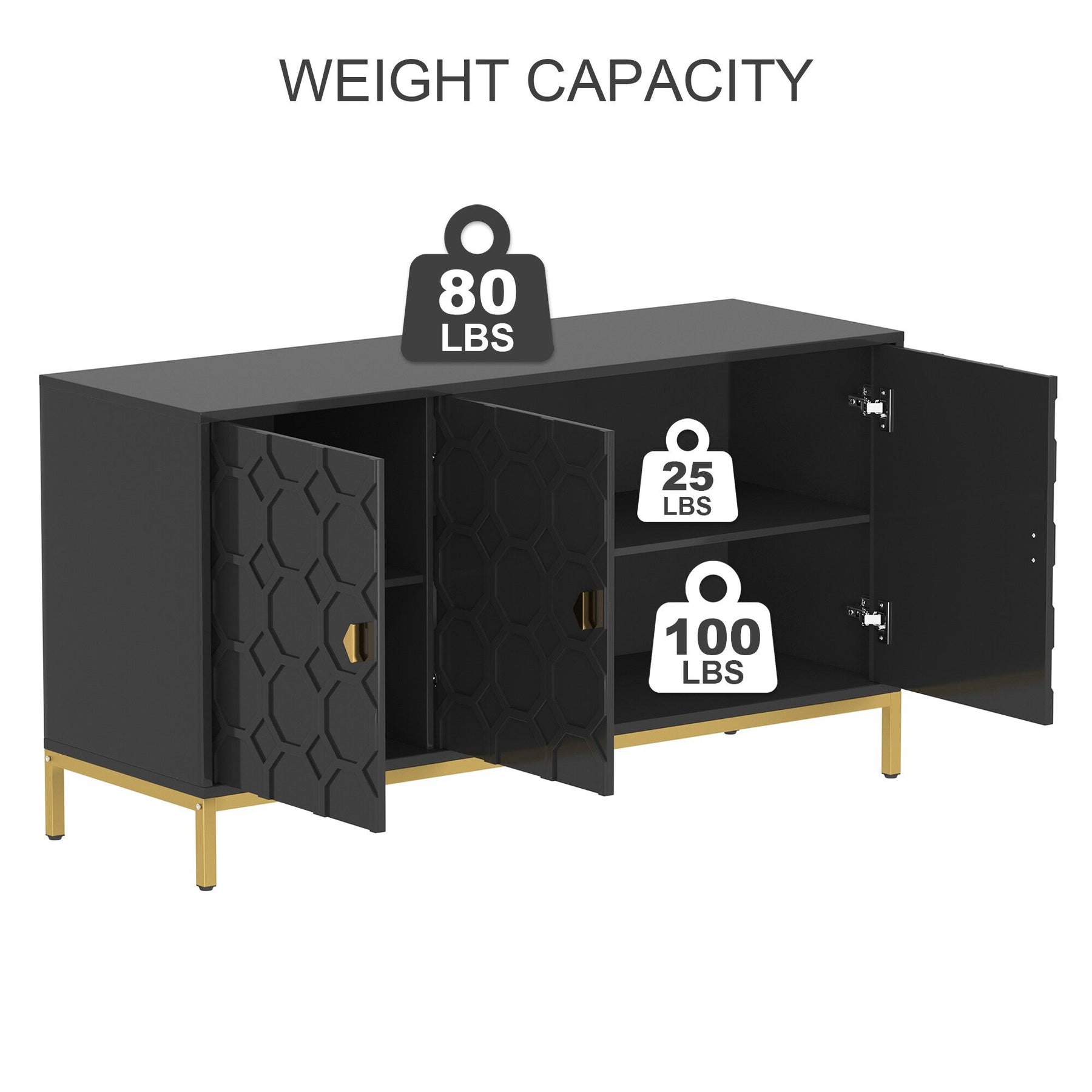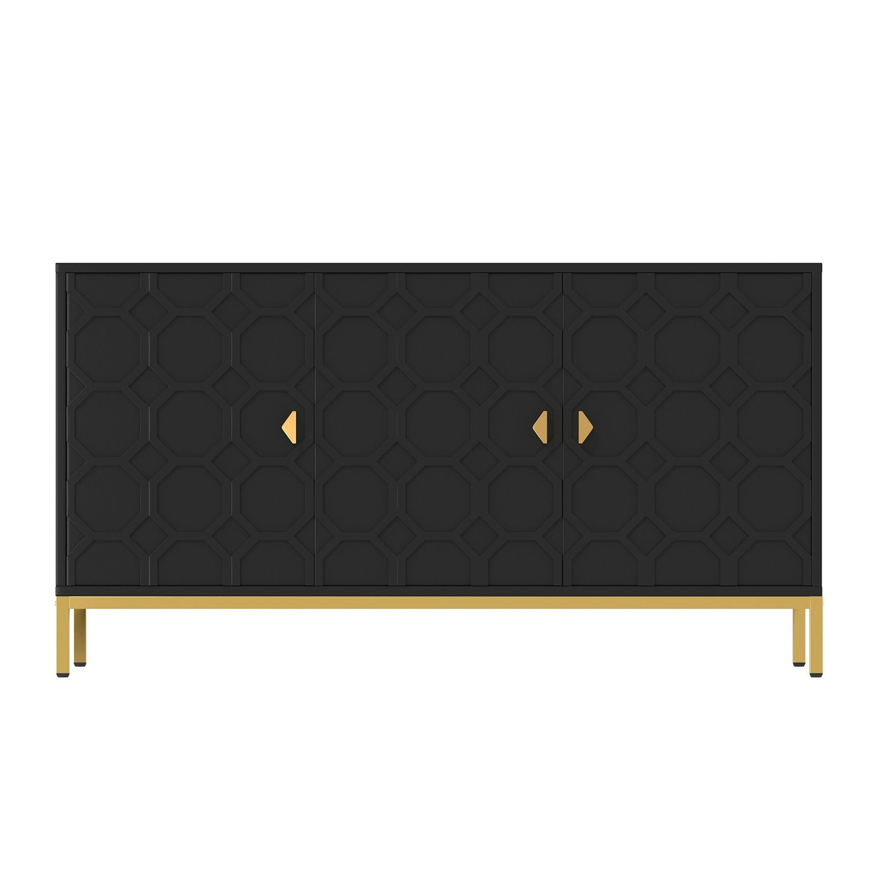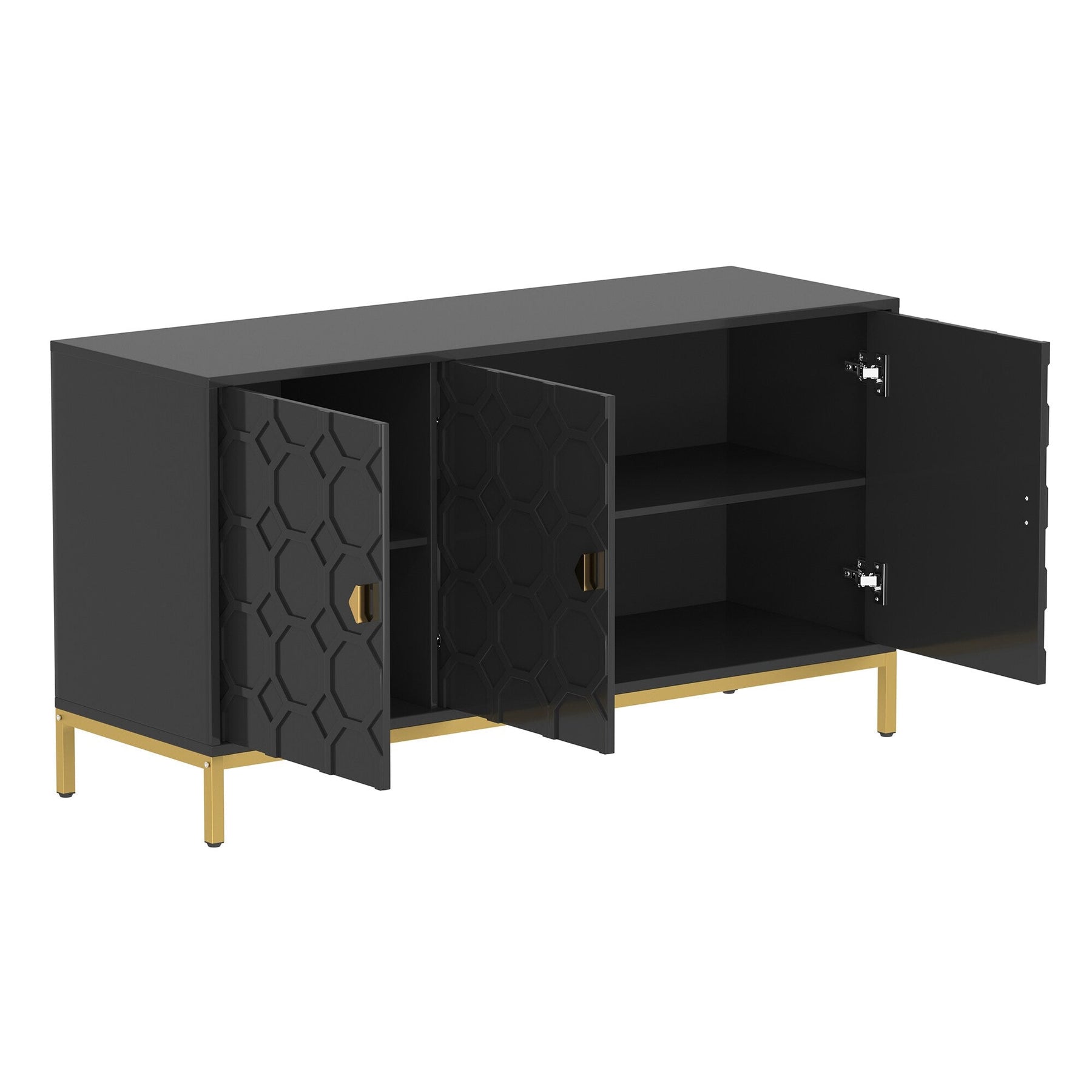 Upgrade your space with the stylish and functional Clihome Black Freestanding Utility Storage Cabinet. Crafted from durable MDF with a sleek glossy PU finish, this versatile cabinet features adjustable shelves and chic golden metal legs, making it a perfect addition to modern living rooms, kitchens, or offices.