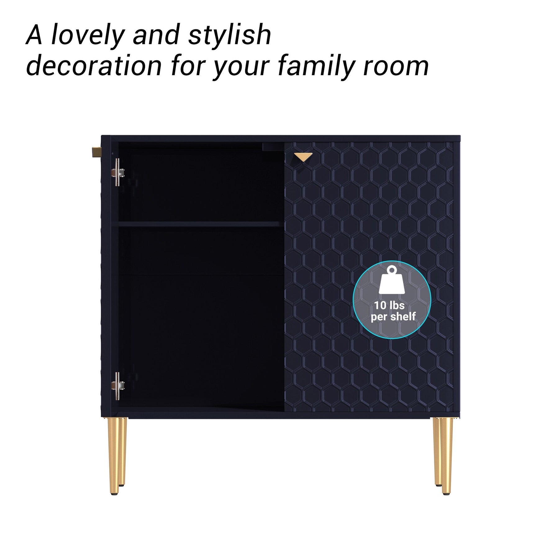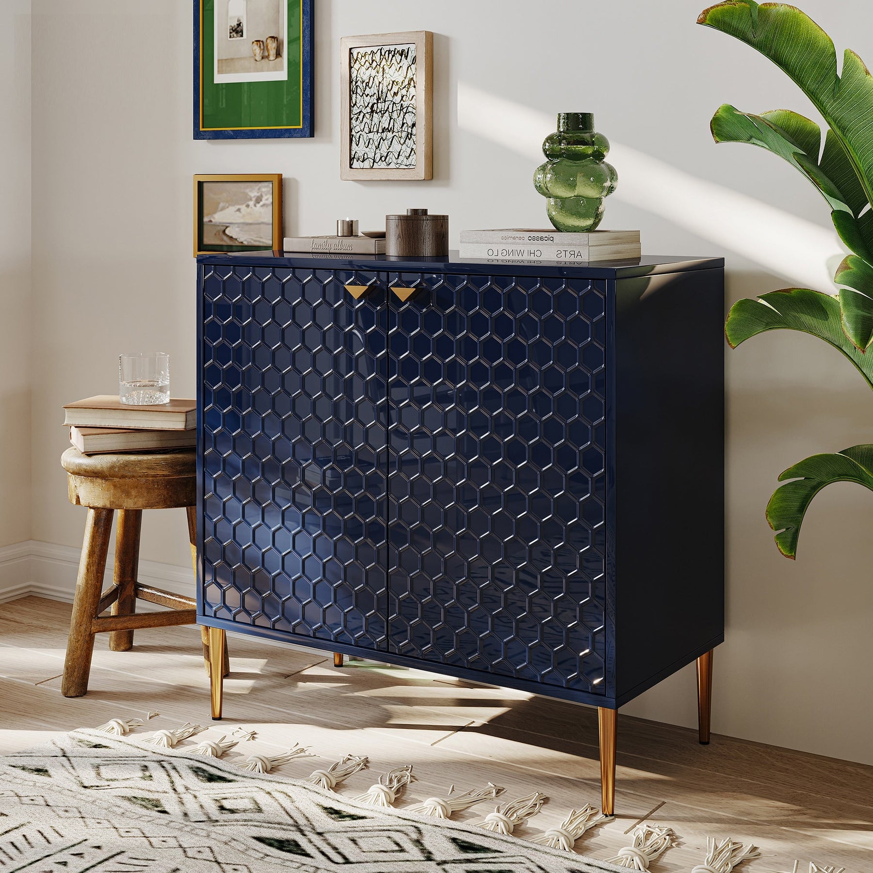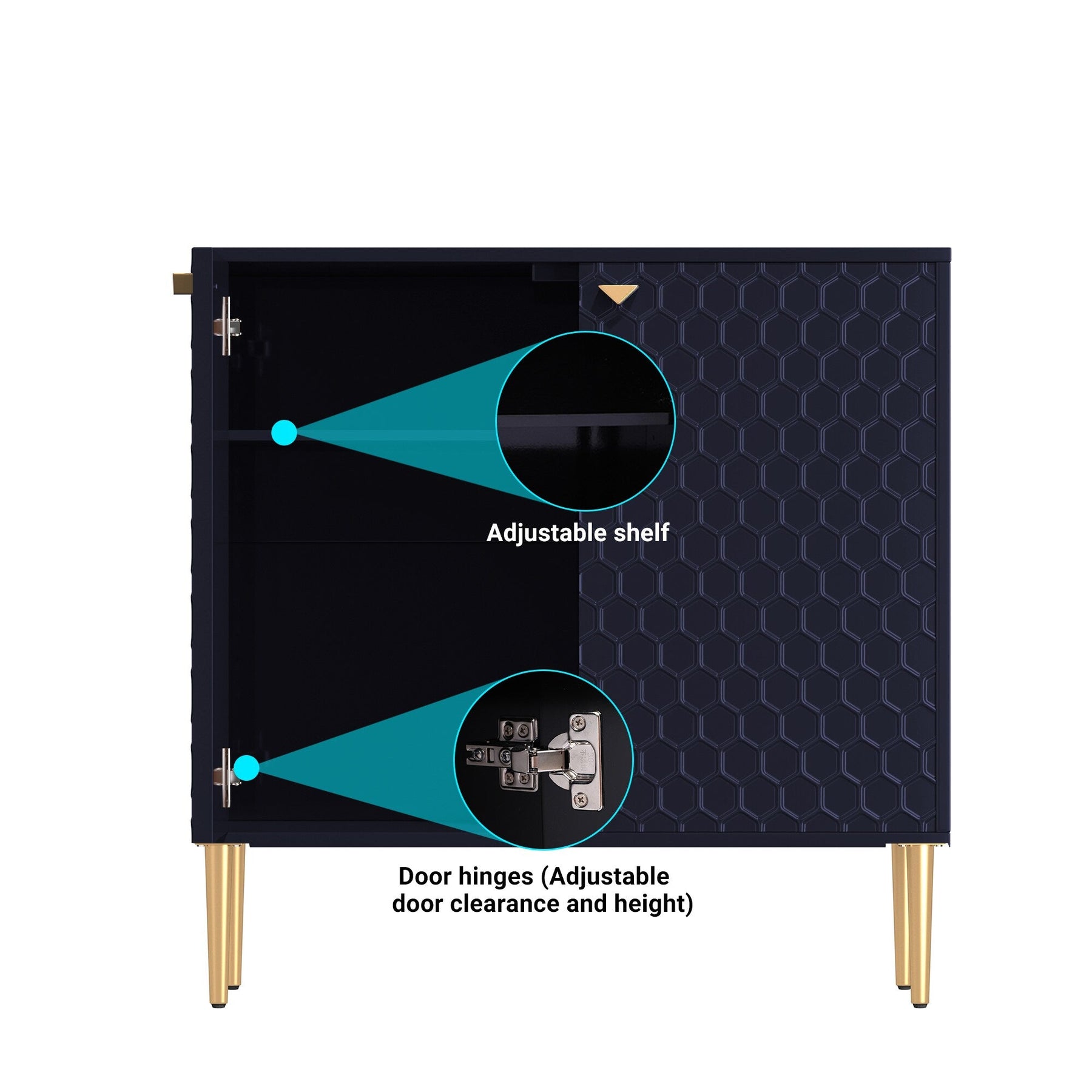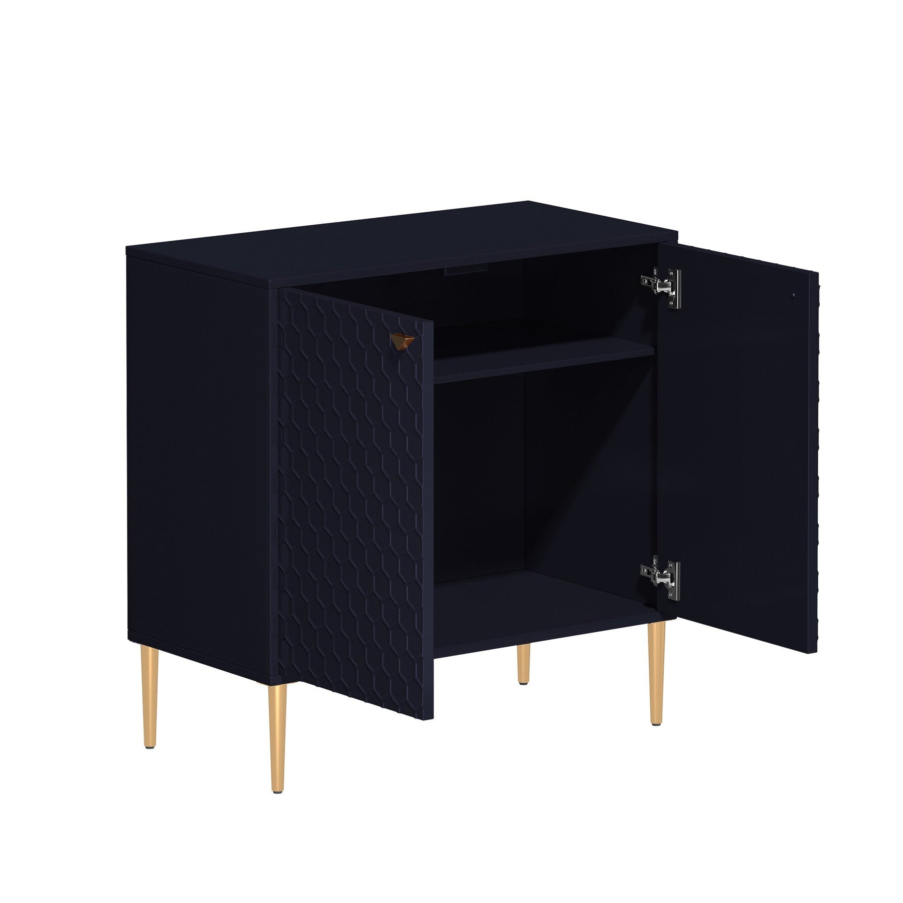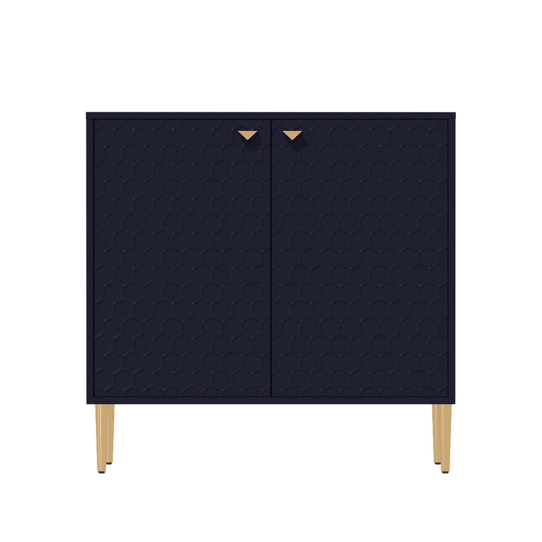 The Clihome Navy Freestanding Utility Cabinet offers a stylish and functional storage solution for any modern home. Crafted from durable MDF, this cabinet features sleek clean lines and adjustable shelves for versatile organization. Its navy finish with golden tapered metal legs adds a touch of elegance, making it perfect for living rooms, offices, and more.