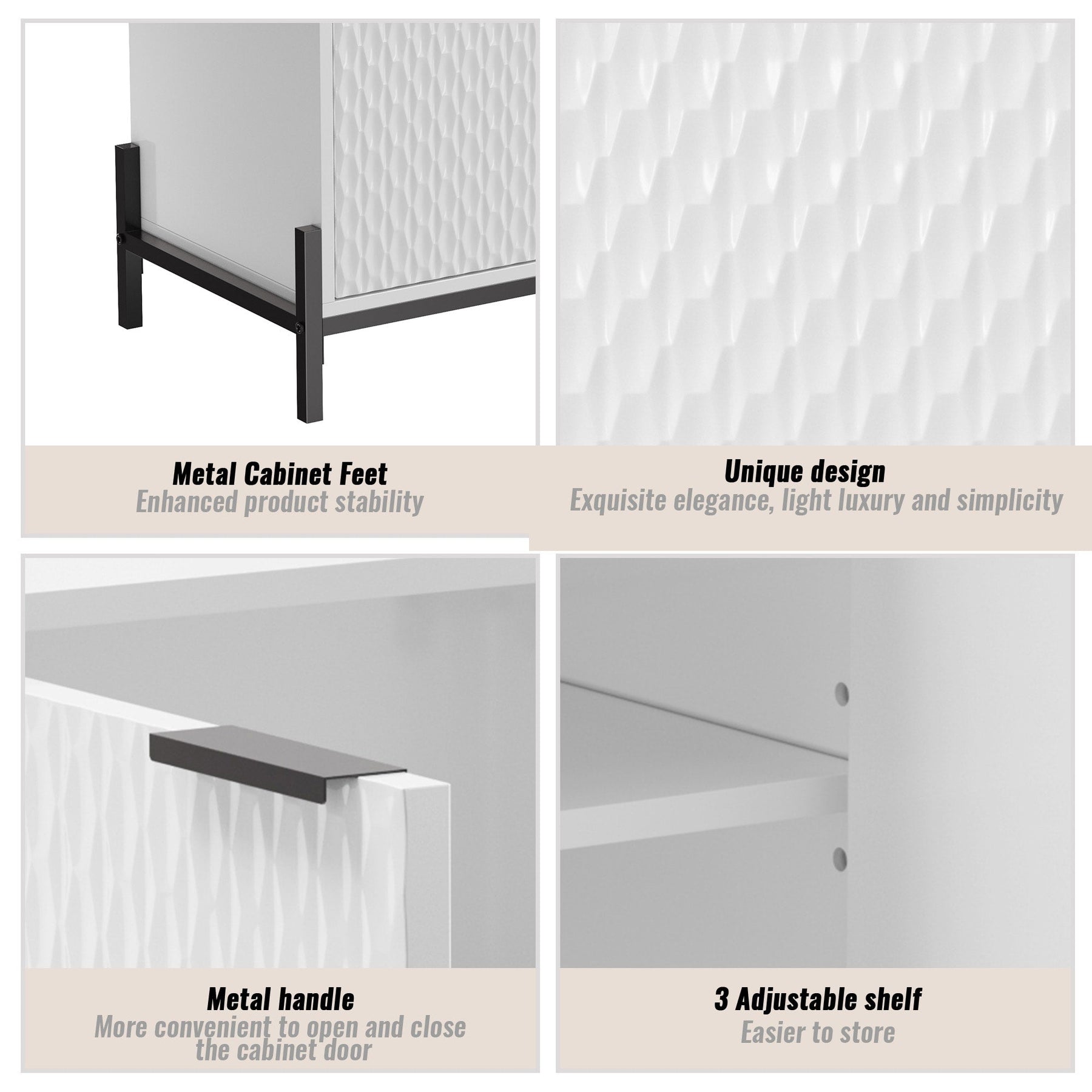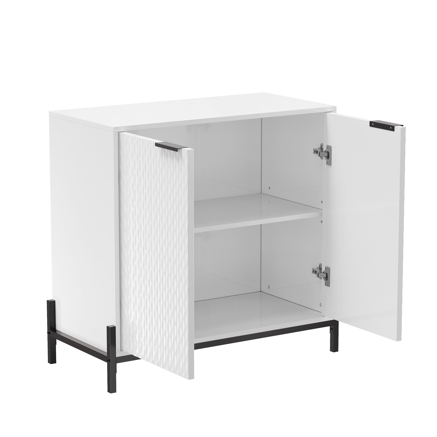 This stylish 2-Door Wooden Accent Storage Cabinet in pristine white offers a versatile storage solution with a touch of elegance. Crafted from high-quality MDF and featuring adjustable shelves, this cabinet complements any room while providing ample space to organize your belongings.