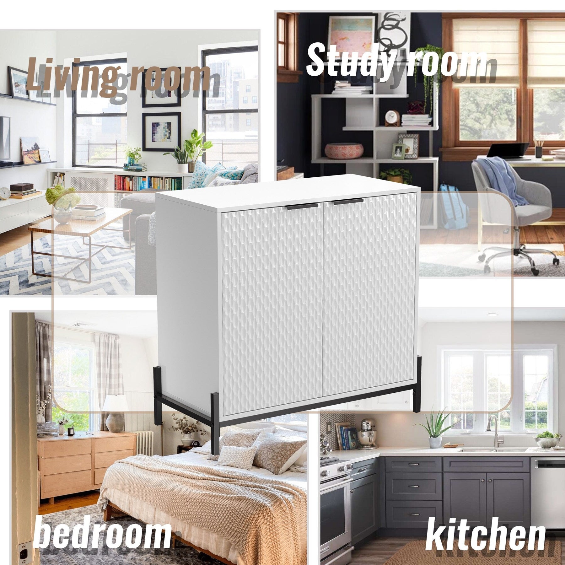 Clihome 2-Door Wooden Accent Storage Cabinet in White 33.1-in W x 31.5-in H Mdf White Freestanding Utility Storage Cabinet
