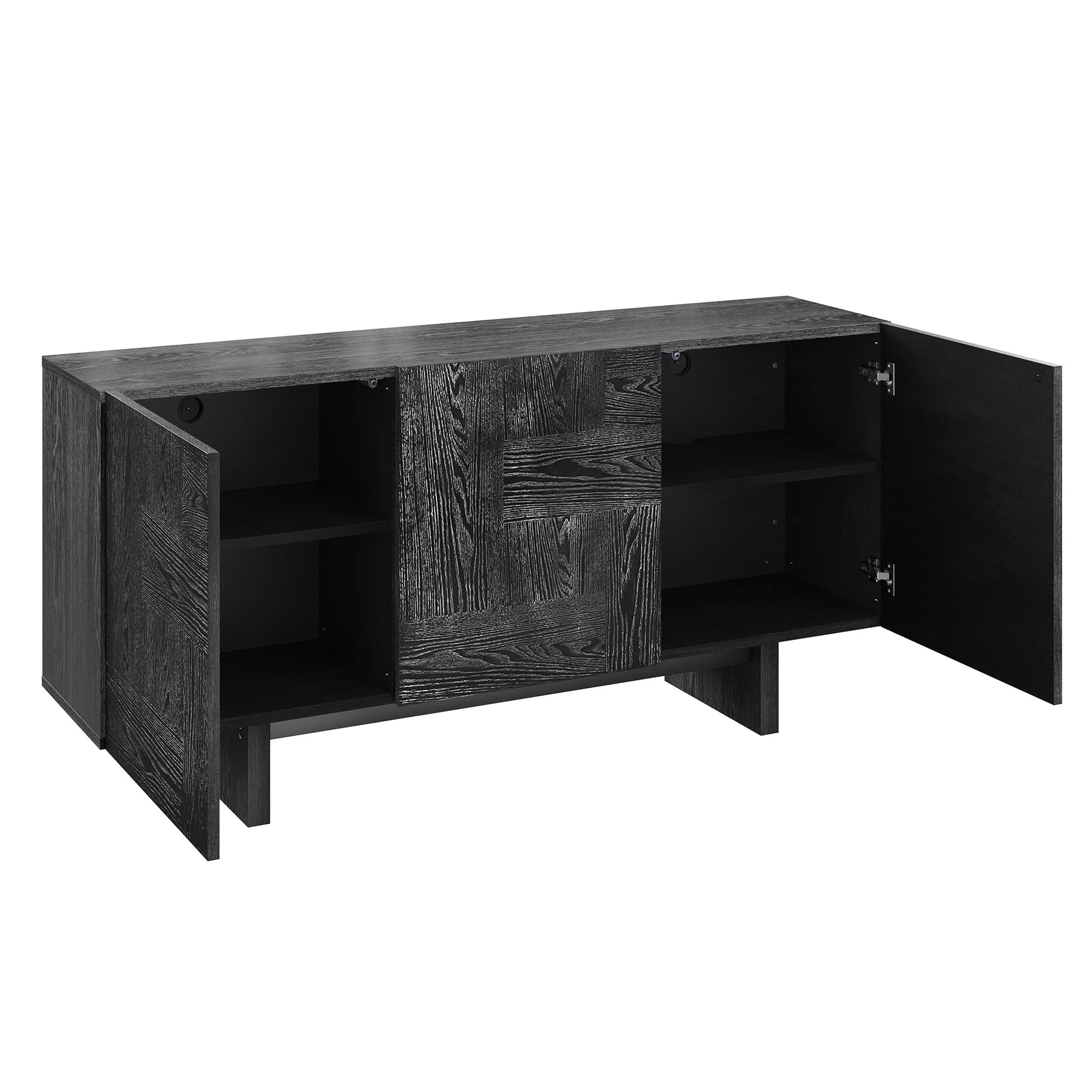Embrace the art of refined living with the Clihome TV Cabinet as your centerpiece. Its exquisite black finish, enriched with dynamic wood grain patterns, brings a breath of modern sophistication into your home. Style it with artful accents or lush greenery to create a personalized harmony. This essential element of luxurious convenience combines aesthetic grace with practical design to enhance any contemporary space.