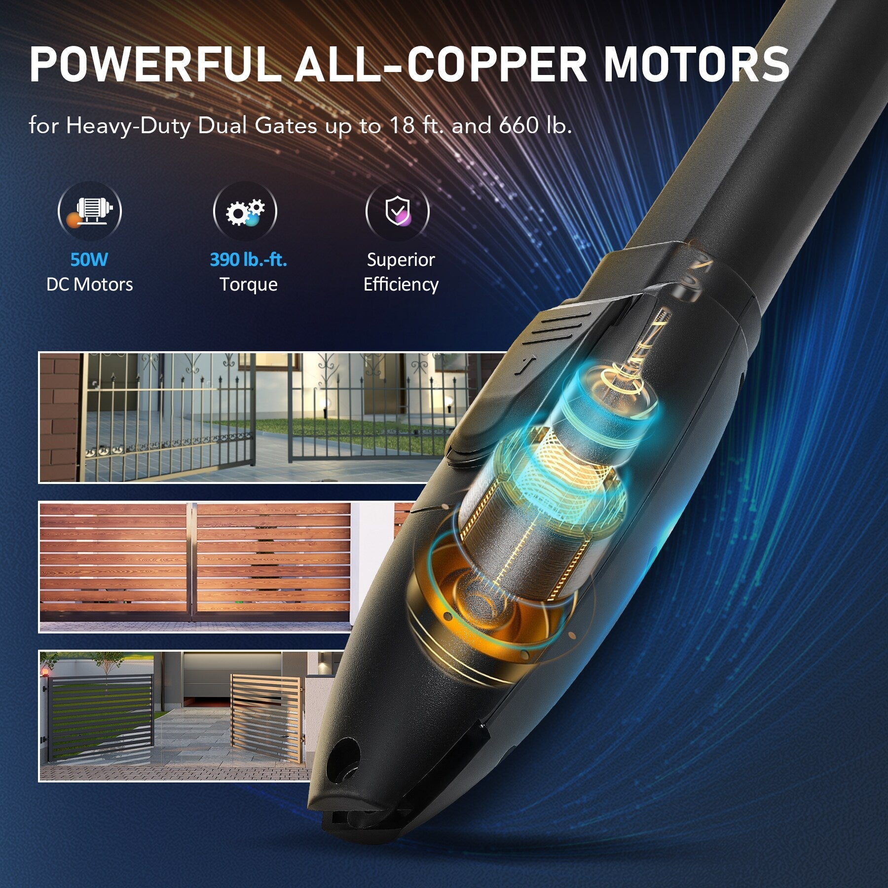 Effortlessly enhance the security and convenience of your home with the CO-Z Dual Swing Driveway Gate Opener. This robust, electric system is designed to simplify your life by allowing you to open or close your gates from the comfort of your car or home. Equipped with reliable all-copper motors and advanced security features, this opener offers peace of mind while handling gates up to 18 feet long and 660 pounds.