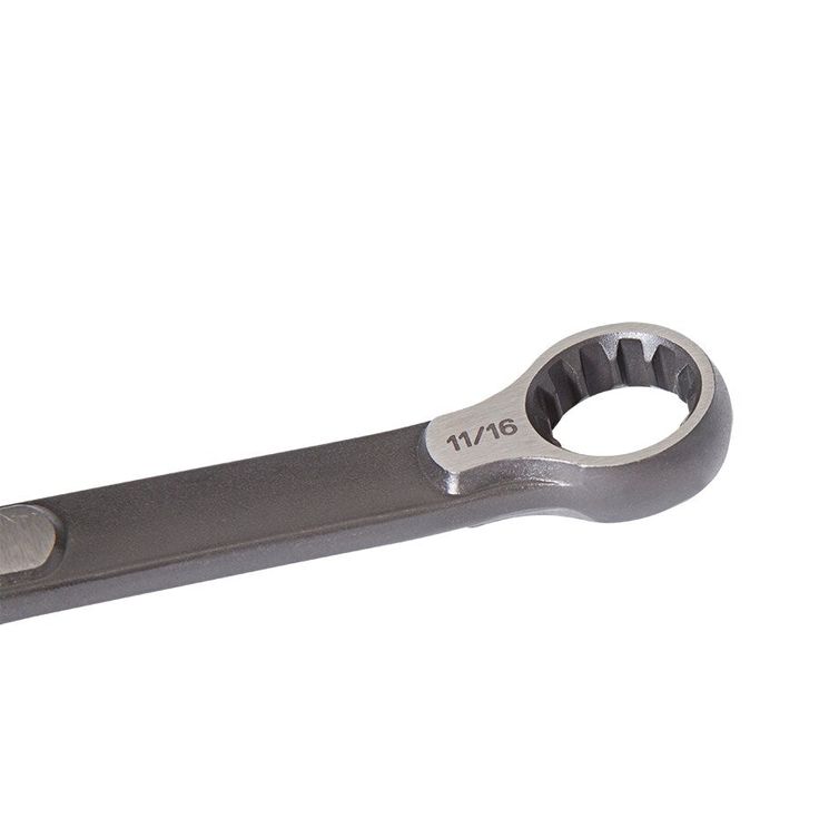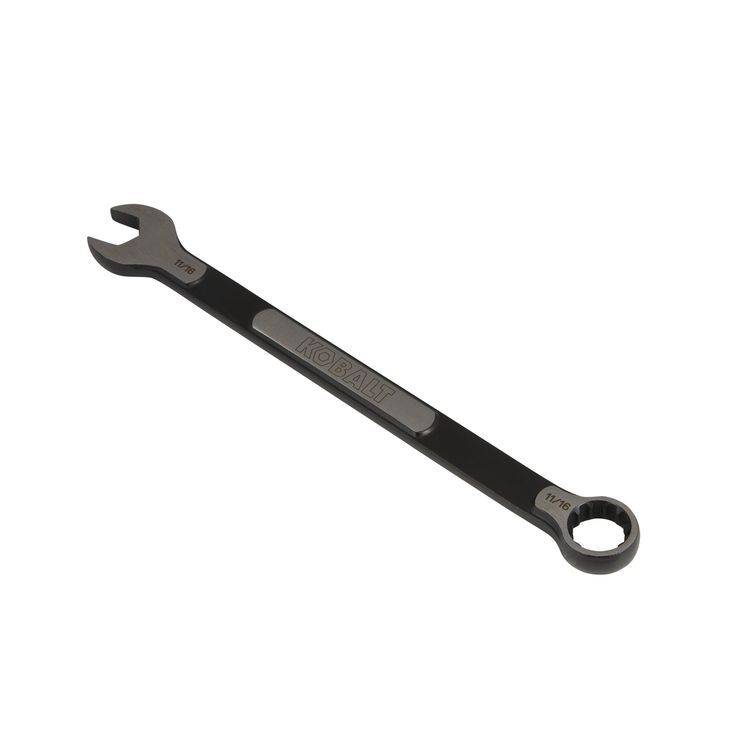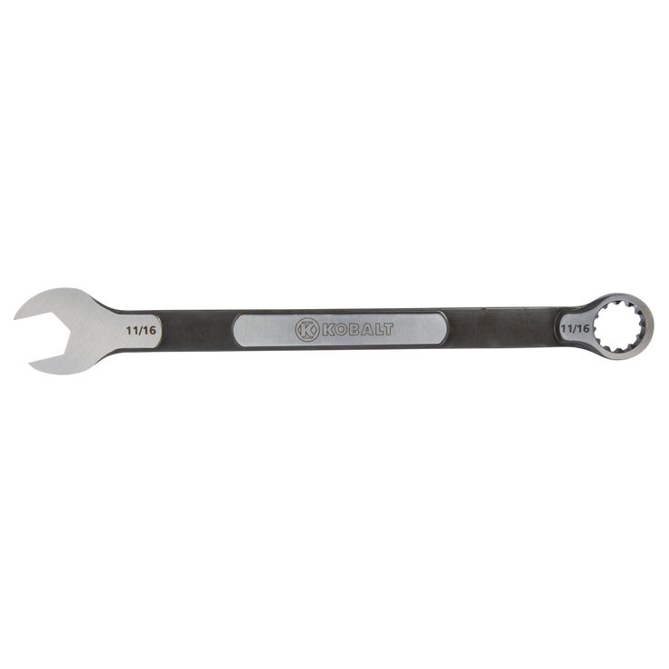 Kobalt 11/16-in combination wrench features one open end and one box end, ideal for reaching around obstacles and tightening and loosening nuts and bolts Dedicated SAE spline drive broach in box end of wrench Specialized wrench design allows work on multiple fastener types including 6-point, 12-point, spline, square, star, spline and most rounded Natural surface grind finish with a matte black finish reduces glare, plus is easily identifiable in your toolbox Hard-stamped size callouts are easy to see Size callout is hard stamped Hassle-free lifetime guarantee Hassle-free lifetime guarantee