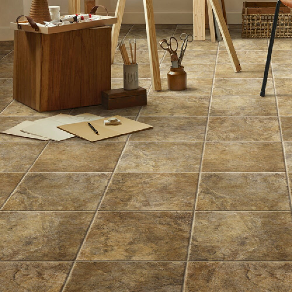 Get a true-to-color sample of Congoleum’s AirStep Plus Starlight Sunstone sheet vinyl. This residential, glue-down vinyl features a low-gloss, stone-look design with a 13-mil wear layer for durable, waterproof performance.