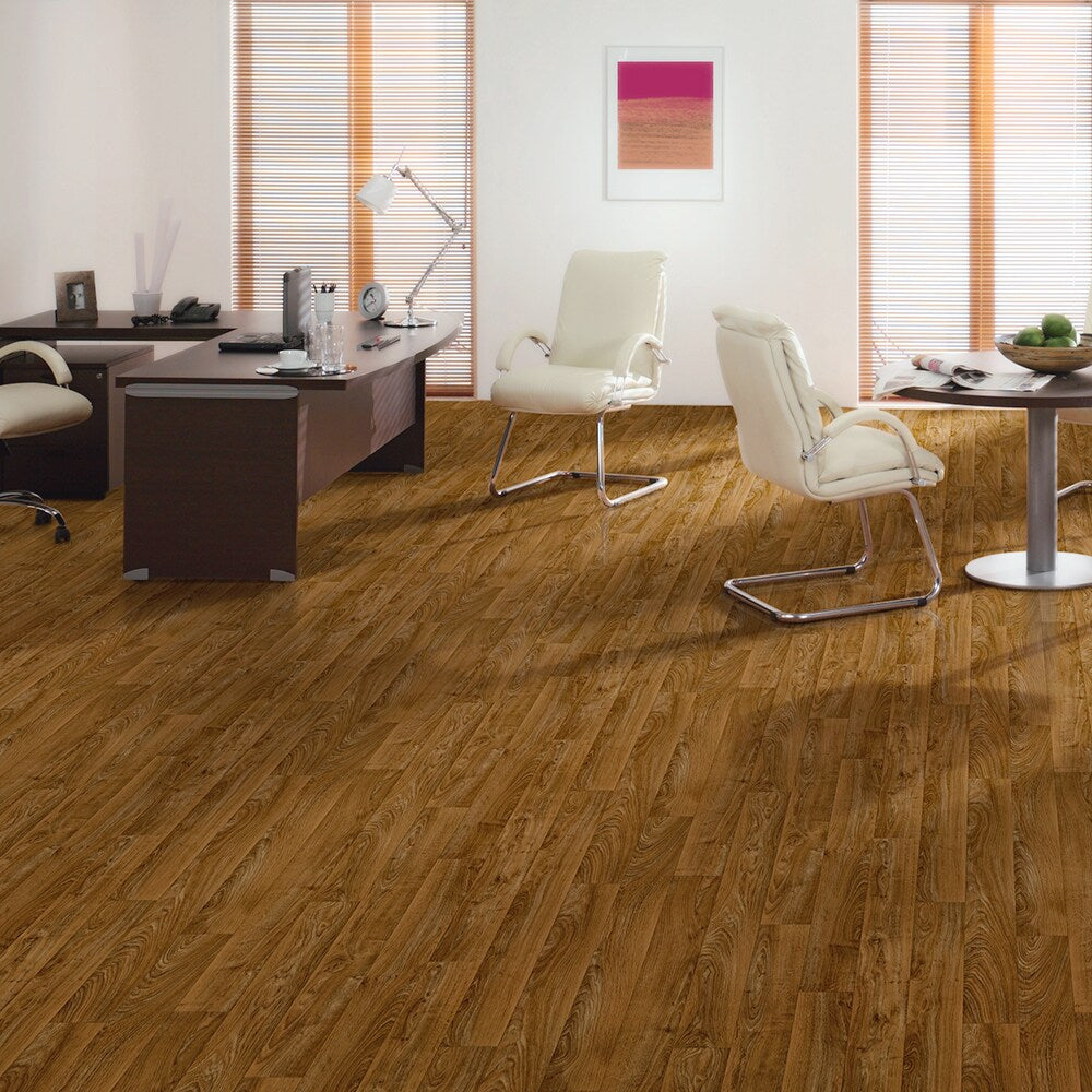 This maple sugar sheet vinyl brings a nuanced, honeyed grain that instantly cocoons a room in warmth. The low-gloss texture feels authentic underfoot, creating an elegant canvas for sleek chrome, creamy leathers, and sunlit neutrals. Try running it wall‑to‑wall in a home office to ground modern furnishings with organic ease. It’s a chic essential for polished, livable luxury.
