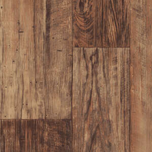 Durable sheet vinyl with a rustic Colonial Plank wood look in Dark Khaki, designed for easy installation and long-lasting performance. Features a low-gloss urethane wear layer with aluminum oxide and UltraTec backing to help mask subfloor imperfections.