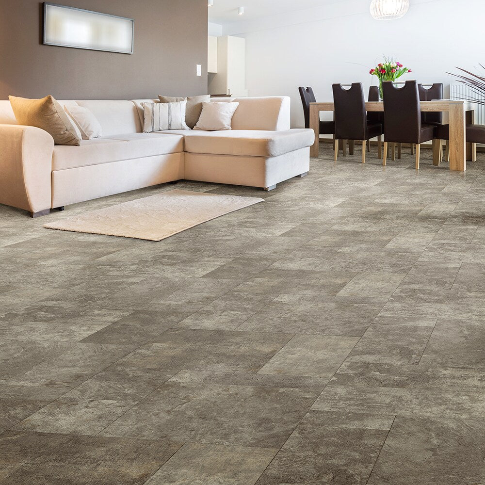 This sheet vinyl lays down a refined, mineral-rich palette that instantly grounds a room in calm sophistication. The matte, textured surface captures the nuance of chiseled stone without the maintenance. Float a creamy sectional and warm wood accents above its cool grays to create balance and depth. It’s an elegant essential that elevates everyday living with quiet luxury.