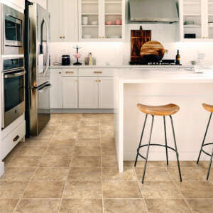 This sheet vinyl casts a soft, sun-washed radiance across the room, echoing the quiet texture of natural stone. The low-gloss finish adds an elegant hush, letting cabinetry and metallic accents sing. Pair it with creamy paints and brushed nickel for a serene, cohesive palette, or warm woods for organic depth. It’s the effortless foundation that makes everyday living feel luxuriously composed.