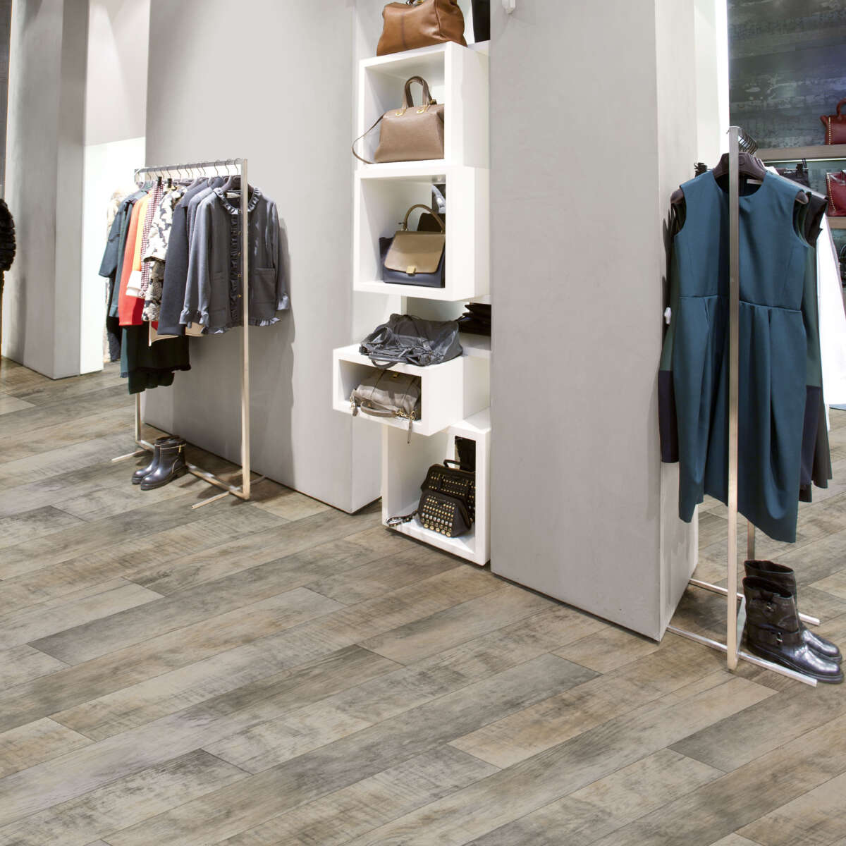 Topside in Trade Winds brings the romance of weathered wood with the effortless elegance of a sealed sheet surface. The muted, multi-tone planks whisper texture without overwhelming the room, creating a refined canvas for modern retail or residential spaces. Pair it with matte metals and soft neutrals to let the subtle grain glow. It’s a luxurious, livable foundation that elevates everyday style.
