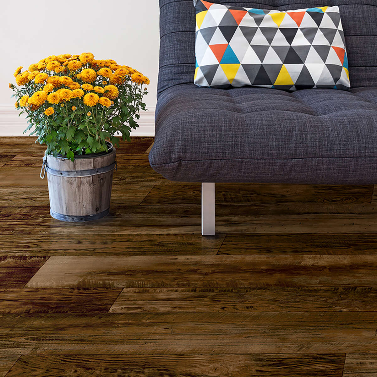 Durable sheet vinyl from Congoleum’s ArmorCore line brings the warm, rustic look of farmhouse timber in a low-gloss finish. Designed for residential spaces, it offers resilient performance and value with cut-to-length convenience for 12‑ft wide installations.