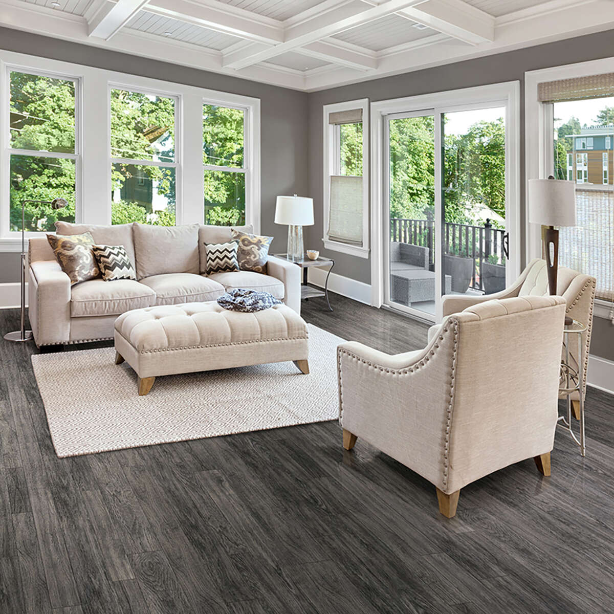 - Wood-Look Design: Oak Run pattern delivers authentic plank visuals in a modern Yukon Sky gray tone