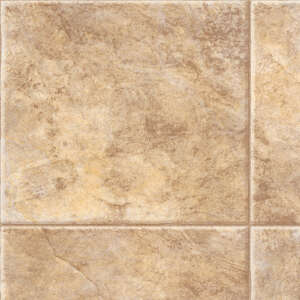 A: It features a marble-look tile pattern in warm Oasis Beige with low-gloss finish.