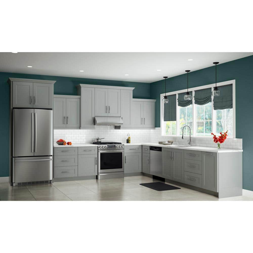 Contractor Express Cabinets Arlington Veiled Gray Plywood Shaker Stock Assembled Wall Kitchen Cabinet Soft Close 12 in W x 12 in D x 36 in H