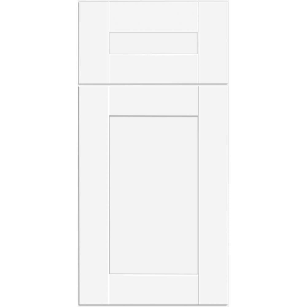 • Design: Shaker-style doors with square recessed panels create a classic look