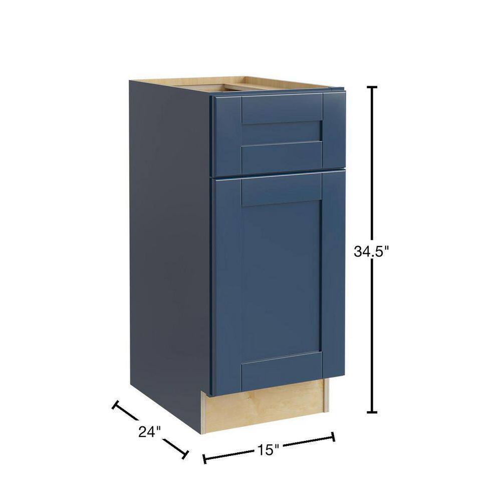 Contractor Express Cabinets Arlington Vessel Blue Plywood Shaker Stock Assembled Base Kitchen Cabinet Soft Close Left 15 in W x 24 in D x 34.5 in H