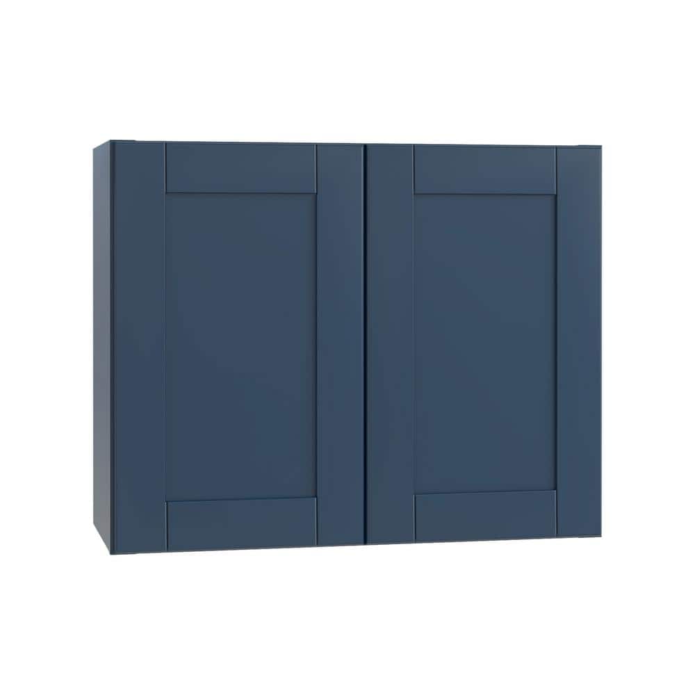 Contractor Express Cabinets Arlington Vessel Blue Plywood Shaker Stock Assembled Wall Kitchen Cabinet Soft Close 30 in W x 12 in D x 24 in H
