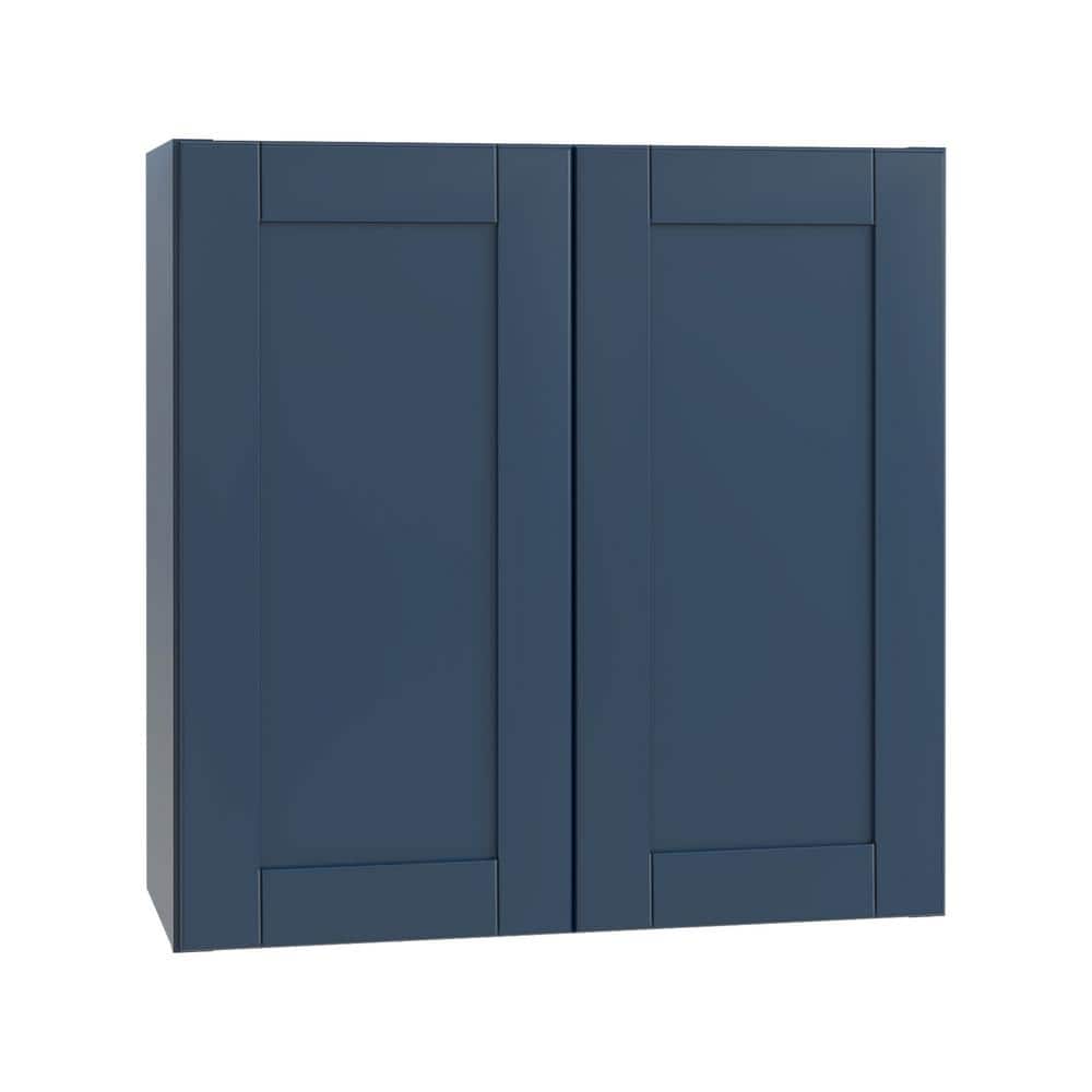 Contractor Express Cabinets Arlington Vessel Blue Plywood Shaker Stock Assembled Wall Kitchen Cabinet Soft Close 30 in W x 12 in D x 30 in H