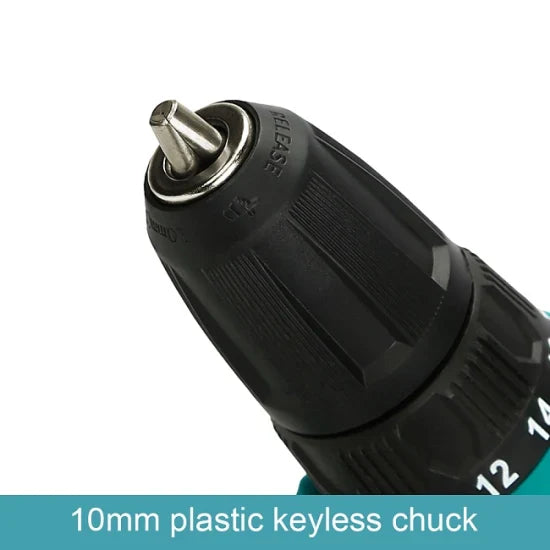 - Compact Design: Easy-to-handle drill with a 10mm plastic chuck for quick bit changes.