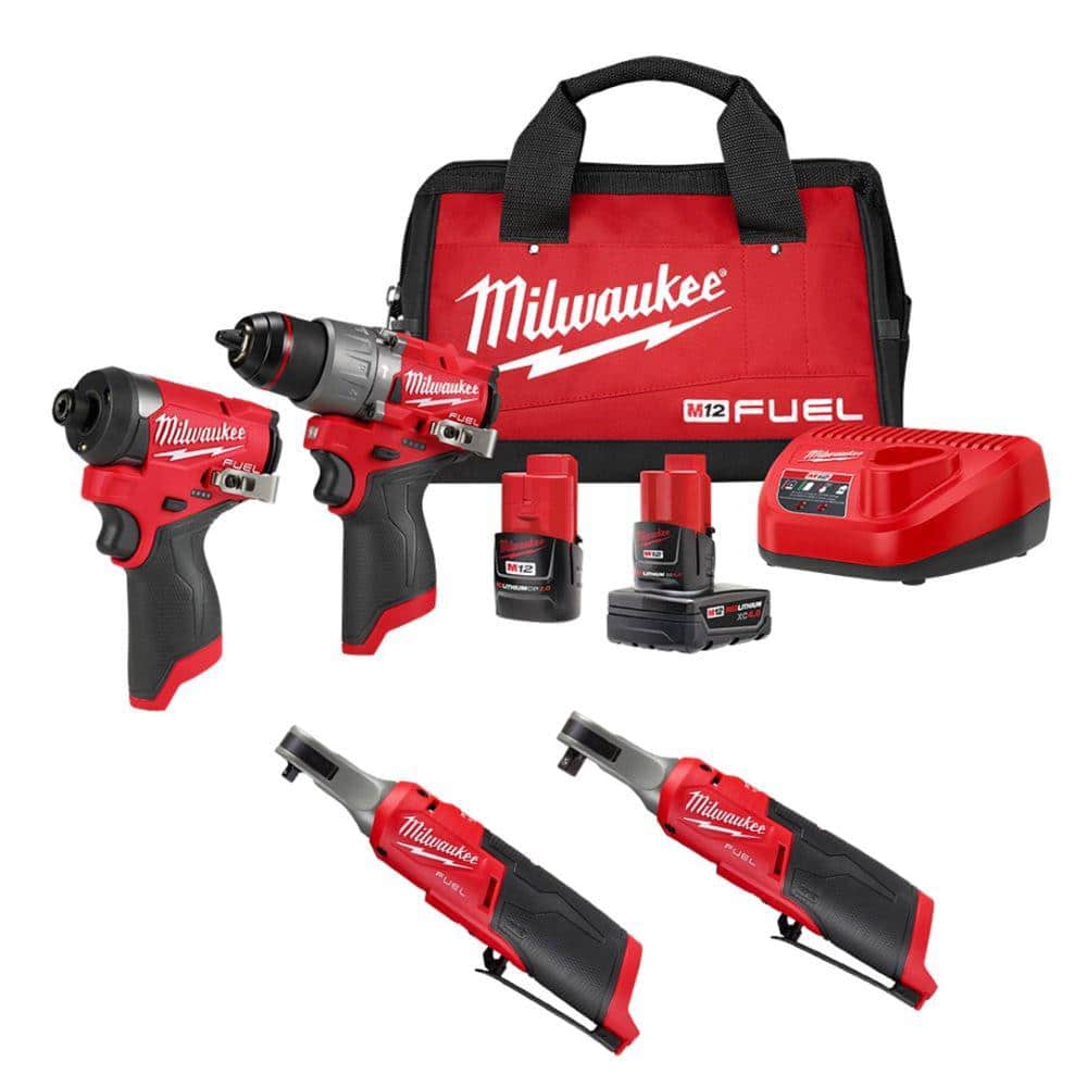 Milwaukee M12 FUEL 12-Volt Li-Ion Cordless Hammer Drill/Impact Driver/3/8 in. & 1/4 in. Ratchet Combo Kit (3-Tool + Bonus Ratchet)