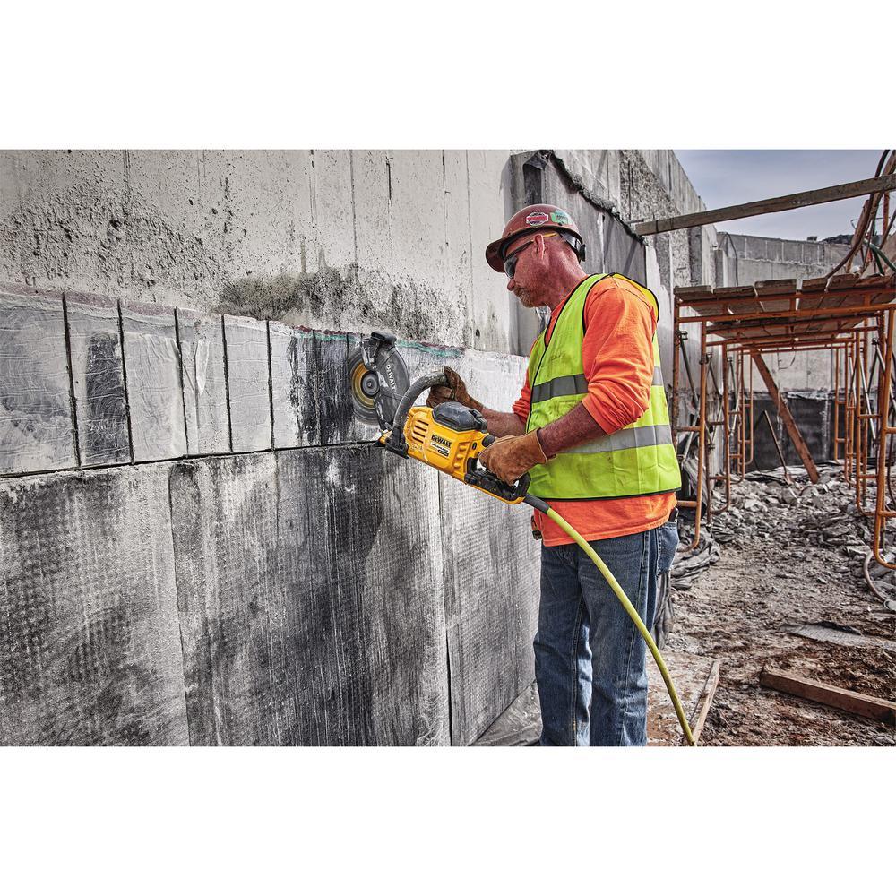 High-performance 60V brushless cordless 9 in. cut-off saw engineered for fast single-pass cuts in concrete, steel, and masonry. Includes two FLEXVOLT 9.0Ah batteries and charger, plus a bonus 4-1/2 in. angle grinder for versatile jobsite cutting.