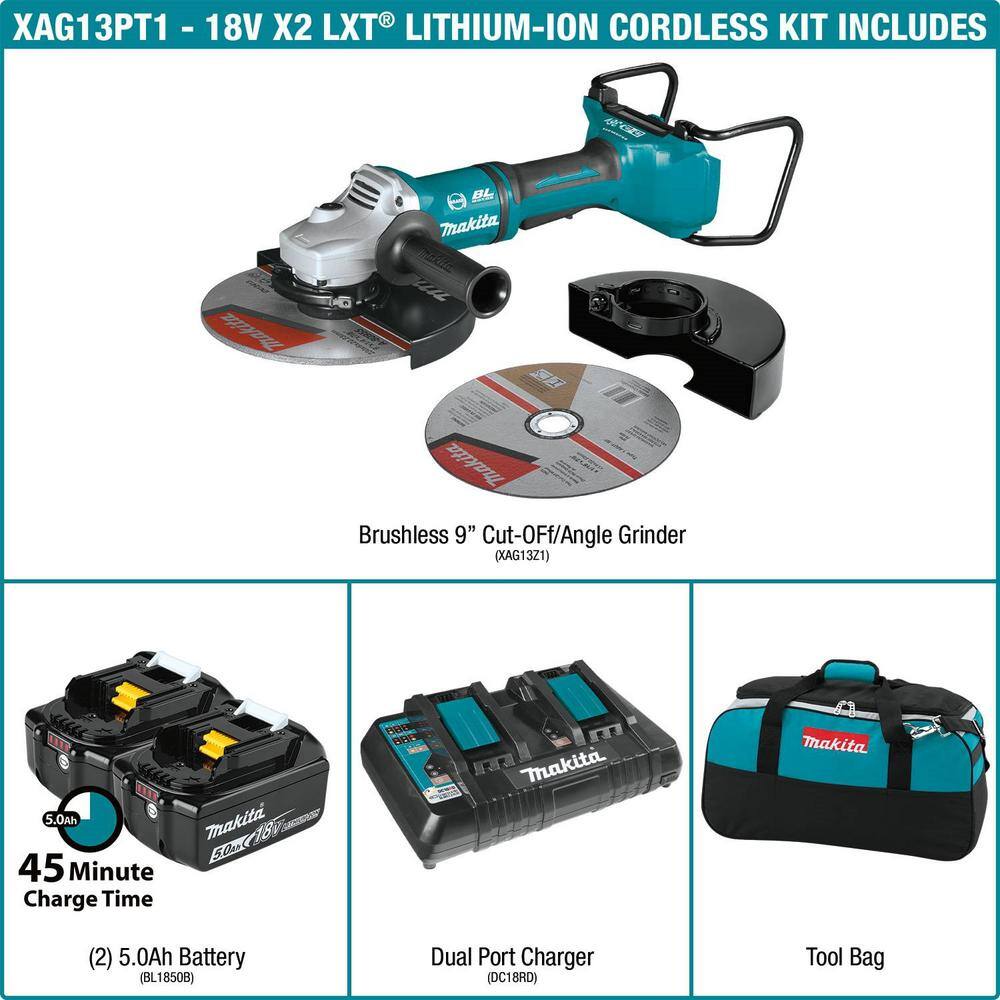 Makita 18V X2 LXT Lithium‑Ion (36V) Brushless Cordless 9 in. Paddle Switch Cut‑Off/Angle Grinder Kit with Electric Brake, 5.0Ah