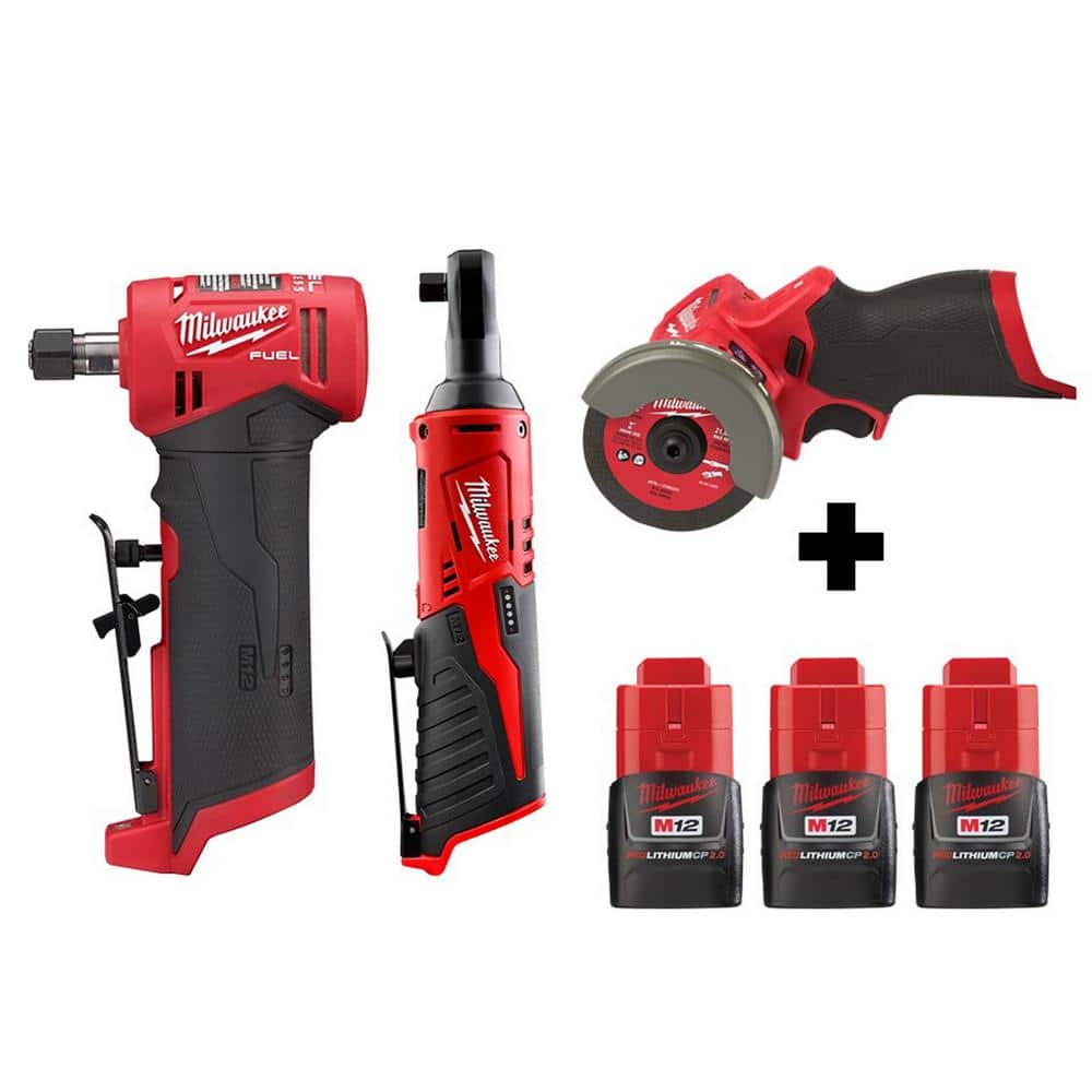 The Milwaukee M12 FUEL Cordless Combo Kit offers a versatile and powerful solution for professional contractors, featuring a right angle die grinder, ratchet, and cut-off saw. Engineered with Milwaukee's POWERSTATE Brushless Motor Technology, this kit ensures exceptional durability and performance, making it a top choice for demanding job sites. Lightweight, compact, and unmatched in power, it streamlines your workflow by providing the reliability and efficiency you expect from Milwaukee tools.