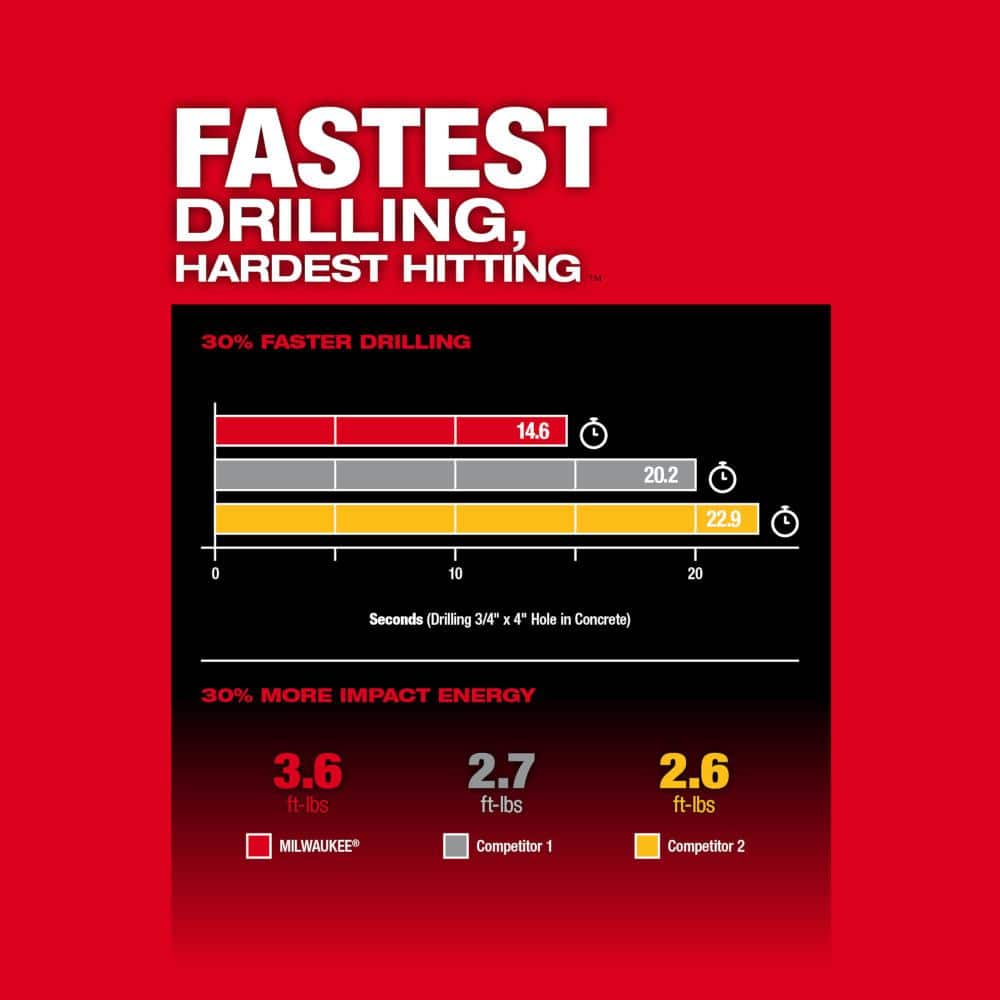 - Brushless POWERSTATE Motor: Delivers fastest-in-class drilling with 3.6 ft-lbs impact energy for tough concrete work.