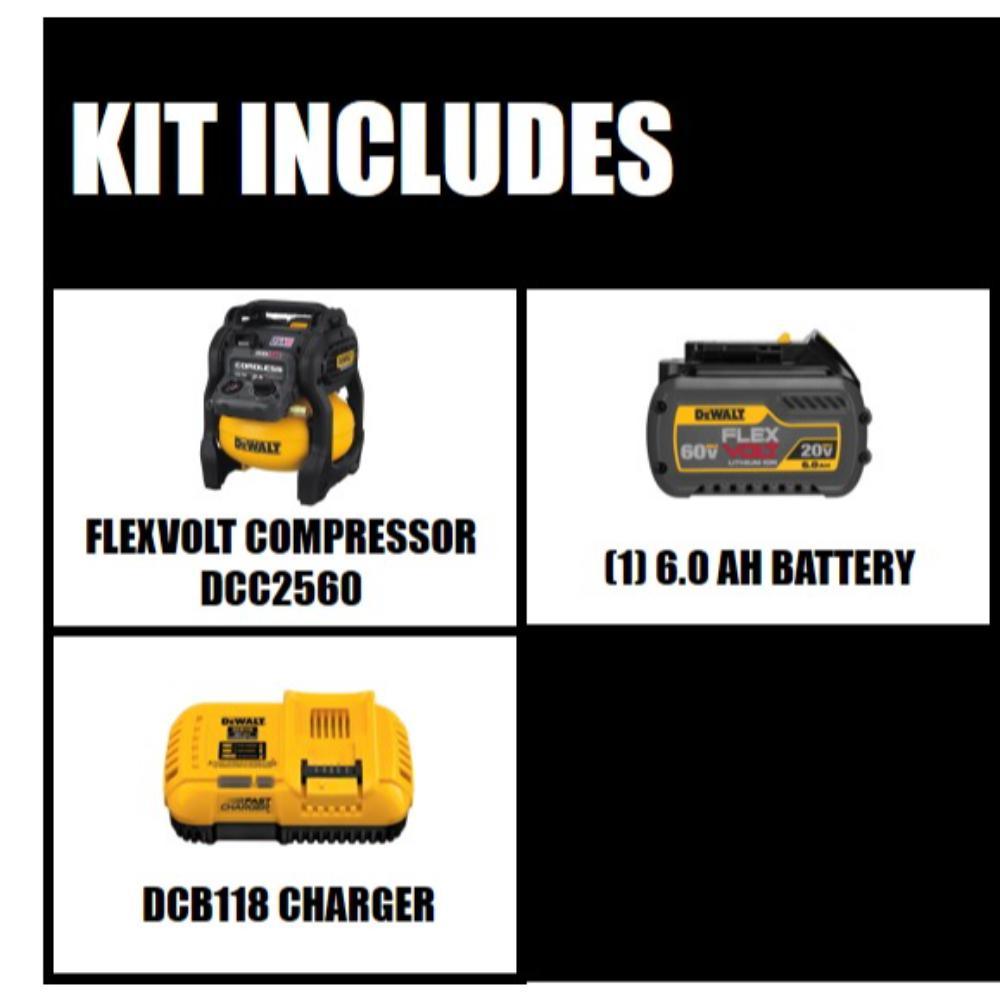 FLEXVOLT 2.5 Gal. 60-Volt MAX Brushless Cordless Electric Air Compressor Kit with Battery 2 Ah and Charger