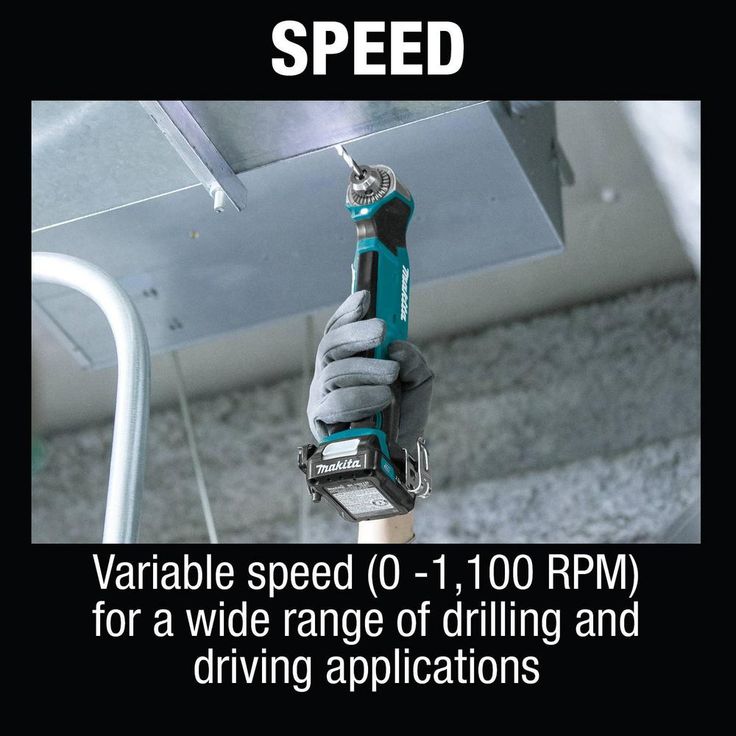 • Variable speed (0-1,100 RPM) for a wide range of drilling and driving applications