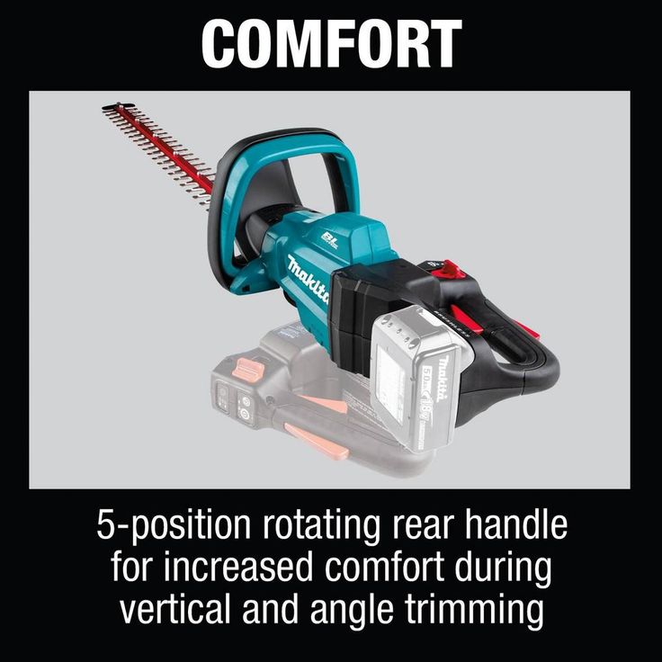 • 5-position rotating rear handle for increased comfort during vertical and angle trimming