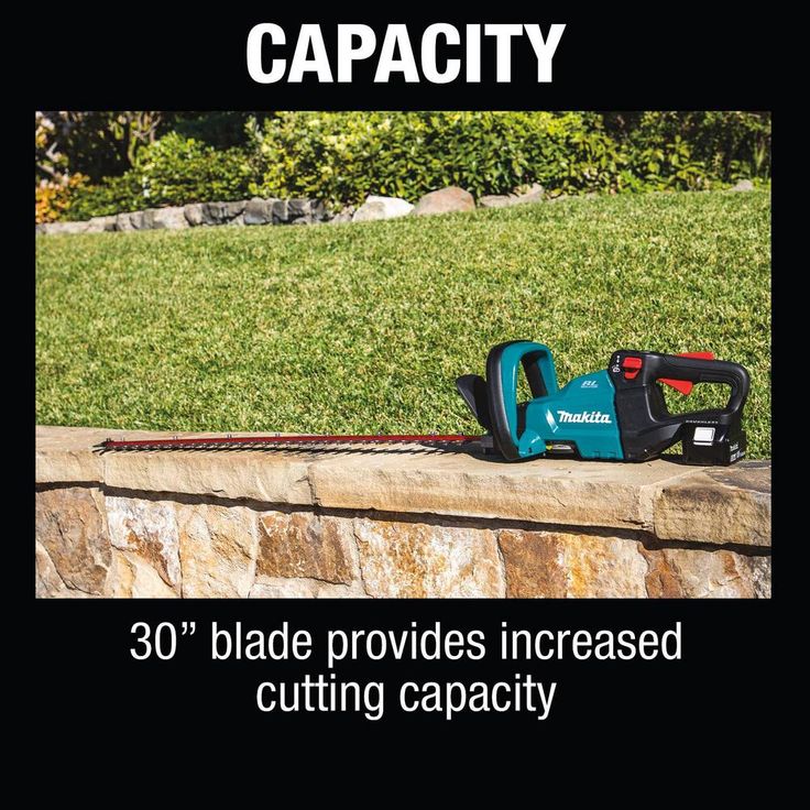 The Makita 18-Volt LXT Brushless Cordless 30 in. Hedge Trimmer Kit (model XHU08T) is part of Makita's wide range of cordless outdoor power equipment. The XHU08T Hedge Trimmer has a 30 in. blade for increased cutting capacity and a 5-position rotating handle for increased comfort when trimming vertically or at an angle. A Makita-built brushless motor delivers 4,400 SPM for faster cutting speed when set on the high speed option. The cordless XHU08T has zero emissions and reduced maintenance: there's no engine oil to change, no spark plug to replace, and no air filter or muffler to clean. And there's no need to drain the fuel for storage. Simply pickup your XHU08T, load an 18-Volt LXT Lithium-Ion battery, and the trimmer is ready to use. The XHU08T part of Makita's expanding 18-Volt Lithium-Ion series, the worlds largest cordless tool line-up powered by an 18-Volt Lithium-Ion slide-style battery. Makita 18-Volt Lithium-Ion batteries have the fastest charge times in their categories, so they spend more time working and less time sitting on the charger.