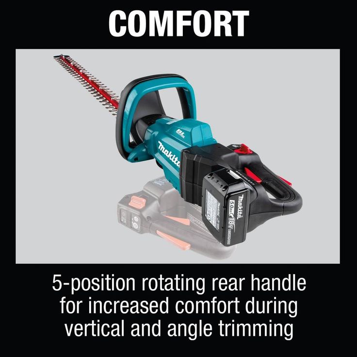 • 5-position rotating rear handle for increased comfort during vertical and angle trimming