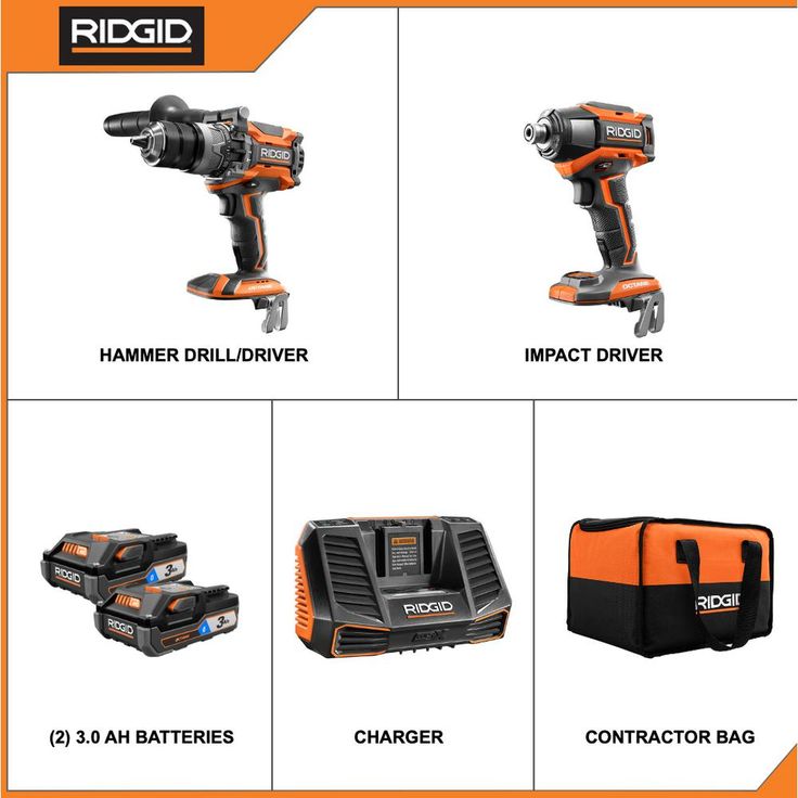 - Includes: (1) R8611506 18-Volt OCTANE Hammer Drill, (1) R86039 18-Volt OCTANE Impact Driver, (2) R840088 18-Volt OCTANE 3.0 Ah Bluetooth Battery, (1) R840095 18-Volt Charger, (1) premium bag, and operator's manuals