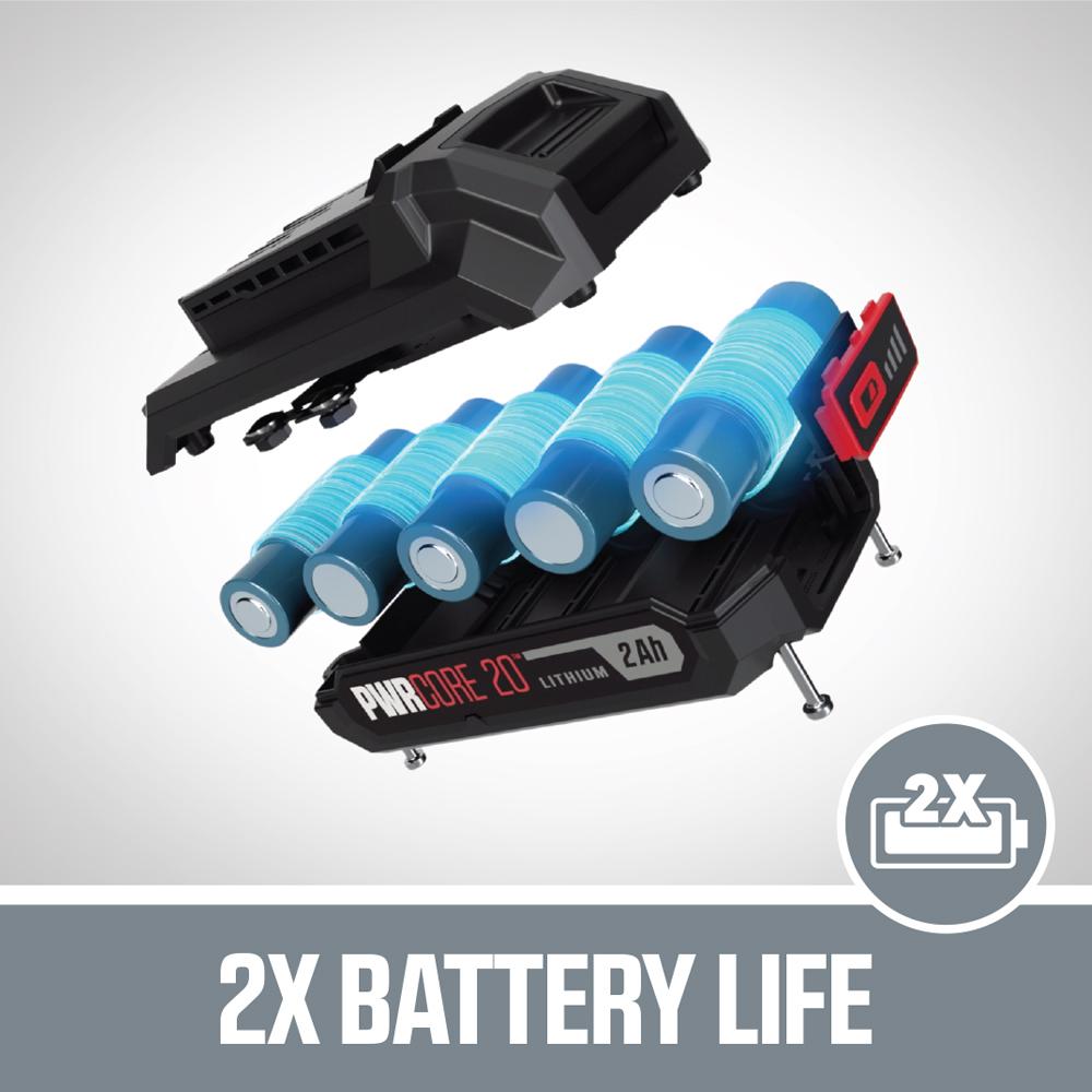 • Longer run time and battery life the PWRCore 20-Volt lithium battery has an innovative temperature management system to keep battery cool and powering on through your project