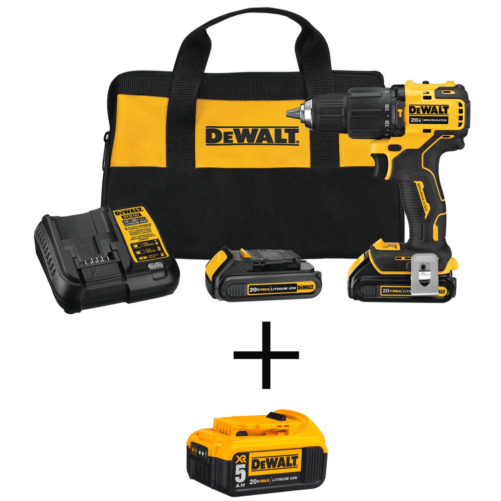 ATOMIC 20-Volt MAX Lithium-Ion Cordless Brushless 1/2 in. Compact Hammer Drill Kit w/BONUS 20-Volt Li-Ion Battery 5.0 Ah