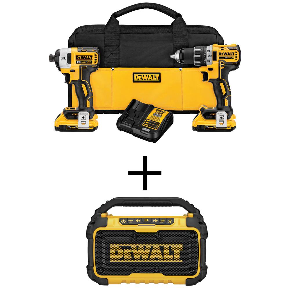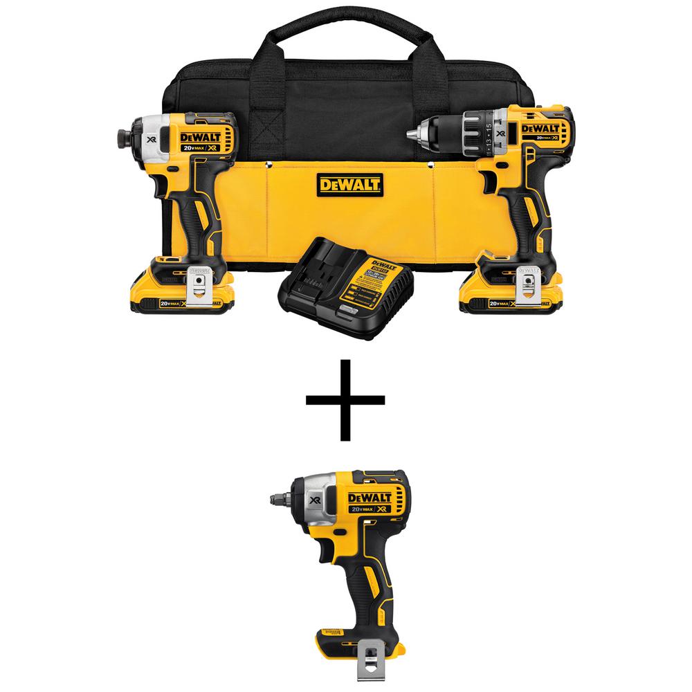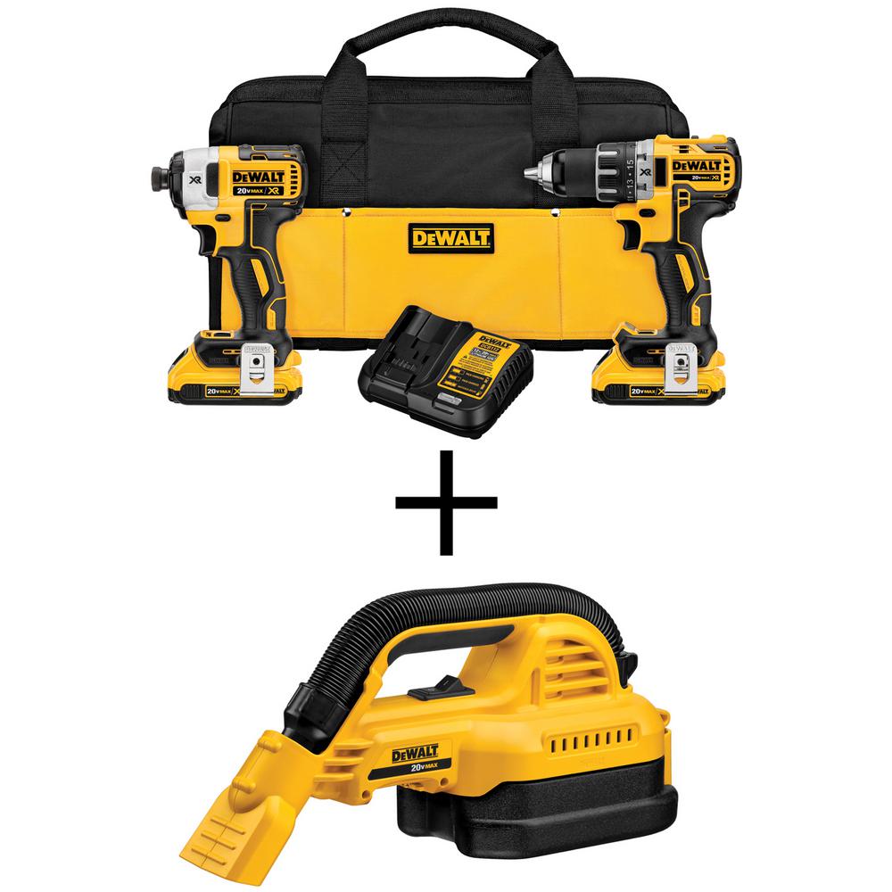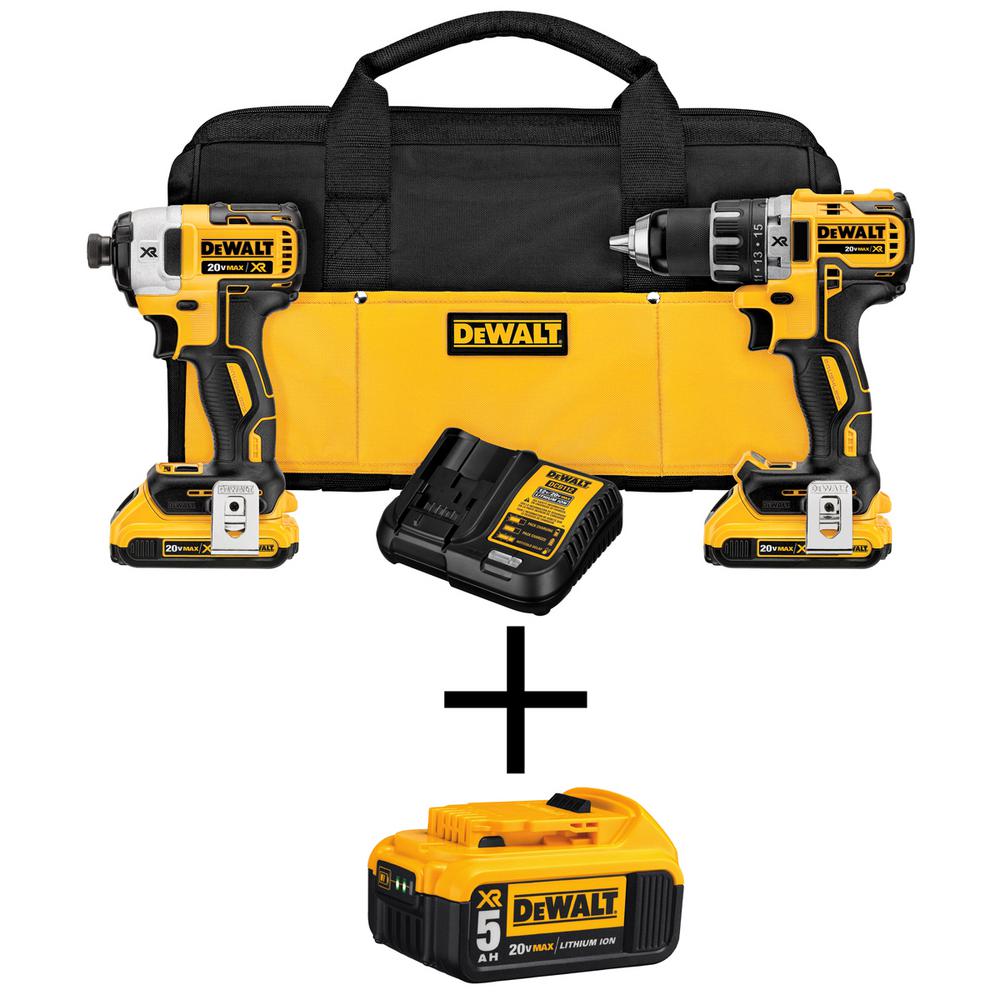 This 20V MAX* Cordless Compact 7-Tool Combo Kit includes one 4 Ah battery and two compact 2 Ah batteries. It's a versatile kit, featuring our a brushless hammer drill which is lightweight and compact for big jobs in tight spaces. The impact driver has a 2-speed transmission with up to 1500 RPMs for a range of fastening and drilling applications. Cut 2x4 lumber at a 45-degree angle in a single pass using the Circular Saw with included 6-1/2 in. Carbide Blade. The brushless random orbital sander has a variable speed dial for control from 8,000 – 12,000 OPM to match the speed to the application. The Grinder features Quick-Change™ wheel release for fast and easy wheel changes. . The bright LED Flashlight illuminates your work area with 110 lumens. The Oscillating Multi-Tool features a 3-speed selector allowing users to choose their speed setting based on application.