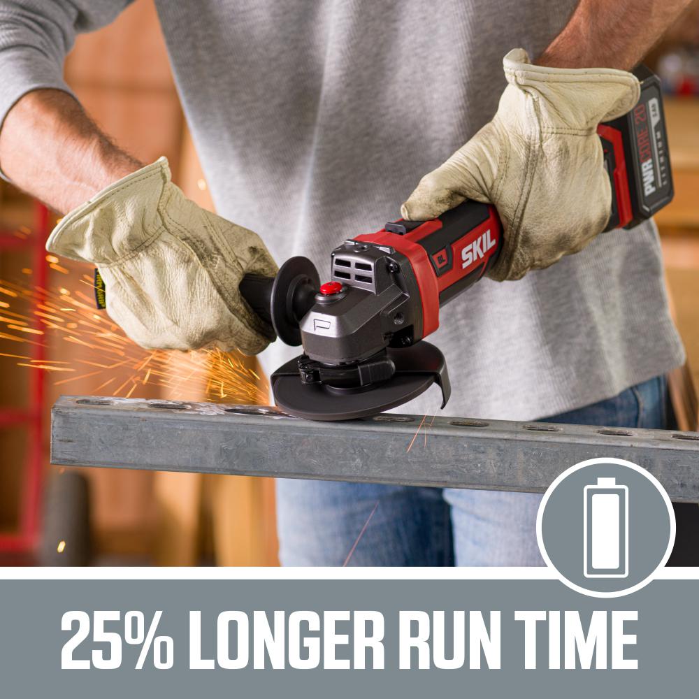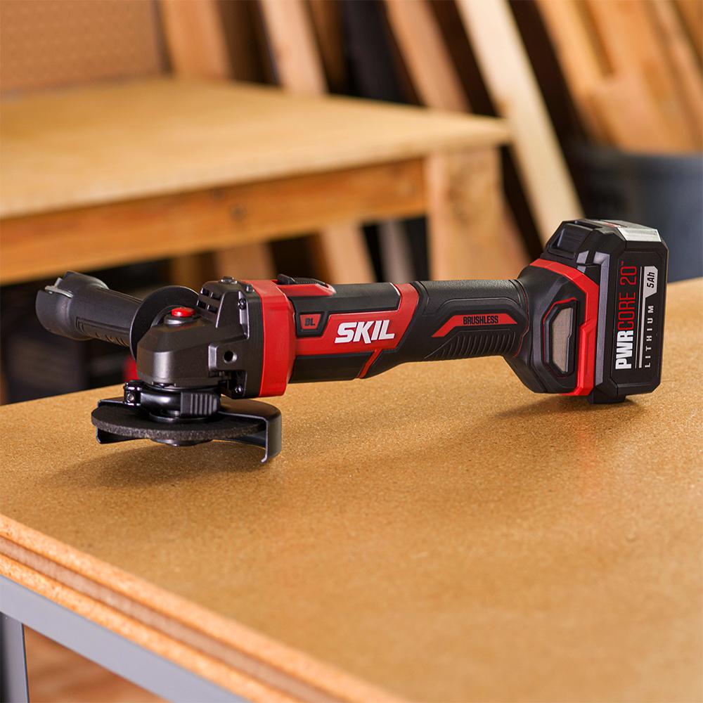 Tackle projects with the powerful PWRCore 20 Brushless 20-Volt Angle Grinder. The digital brushless motor provides extended tool life and the power needed to grind and cut through a variety of materials. The dual function lock-switch prevents accidental start-ups and locks on ­­­­for prolonged use. Plus you can easily move the guard with a tool-less guard adjustment. Includes 5.0Ah PWRCore 20 Lithium-ion Battery with PWRAssist USB Adapter and PWRJump Charger.