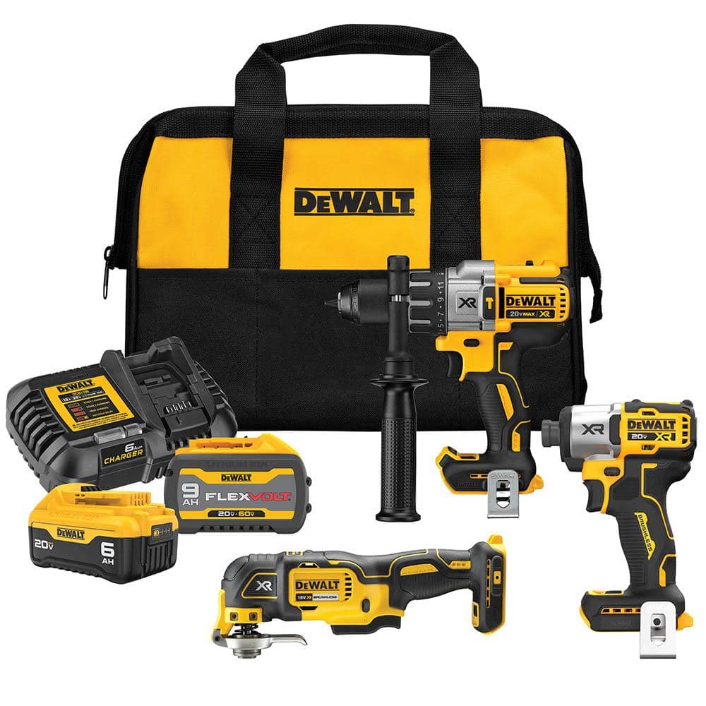 Elevate your professional toolkit with the DEWALT 20V Lithium-Ion Cordless 3-Tool Combo Kit. Featuring a hammer drill, impact driver, oscillating tool, and a powerful reciprocating saw, this set is powered by FLEXVOLT batteries for extended runtime and versatile job site performance. Ideal for pros tackling demanding tasks, these tools offer unmatched power, precision, and durability.