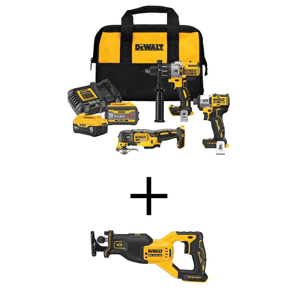 DEWALT 20V Lithium-Ion Cordless 3-Tool Combo Kit and Brushless Recip Saw with FLEXVOLT 9 Ah and 20V 6 Ah Batteries and Charger