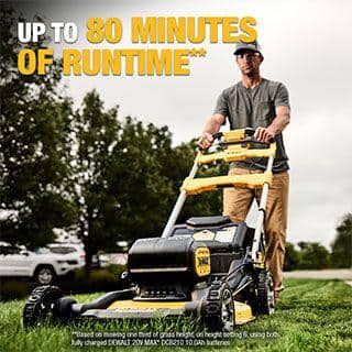 • Extended Runtime: Provides up to 80 minutes of mowing with its 20V MAX Lithium-Ion batteries.