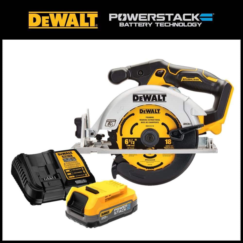 DEWALT 20V MAX Cordless Brushless 6-1/2 in. Circular Saw with POWERSTACK Battery Starter Kit