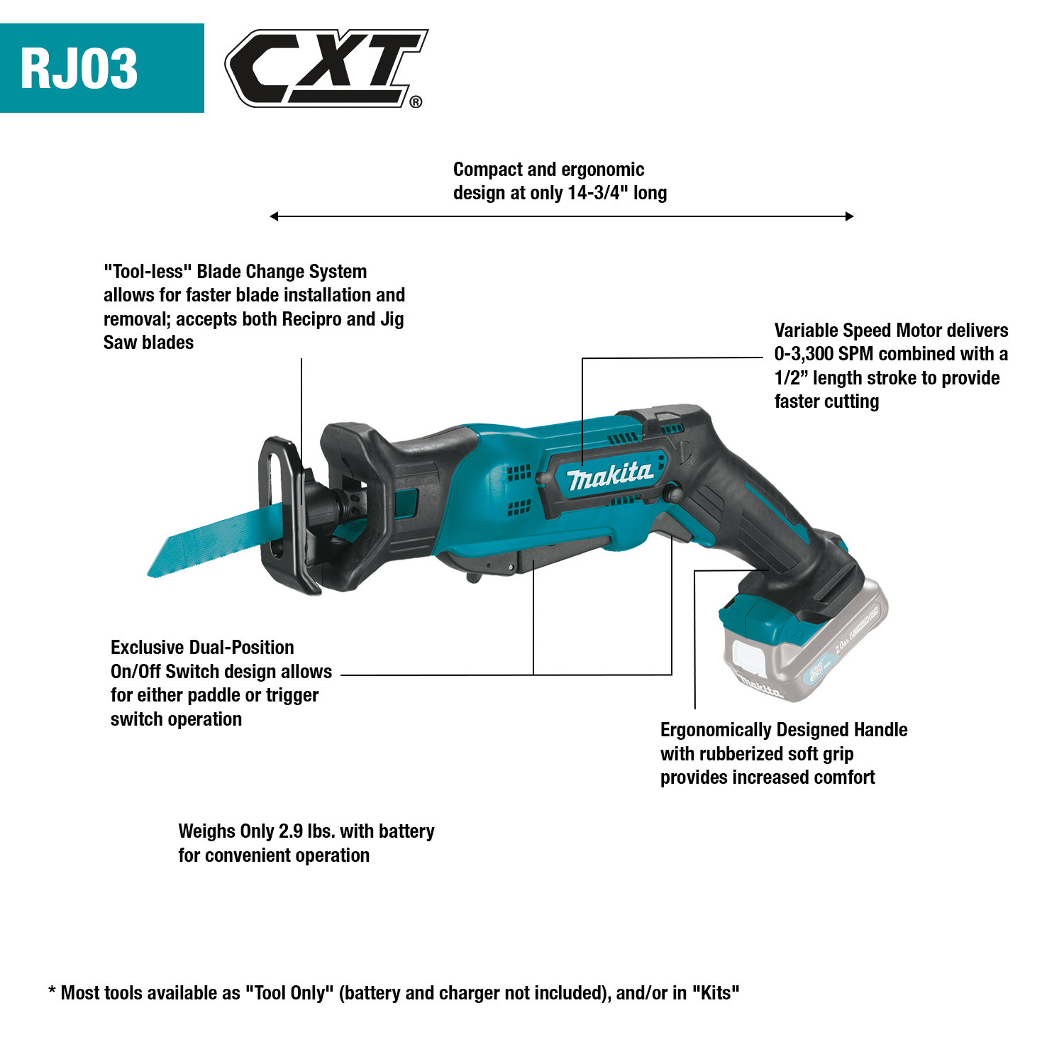 - Lightweight Design: Only 2.9 lbs. with battery and just 14-3/4 in. long to fit tight spaces