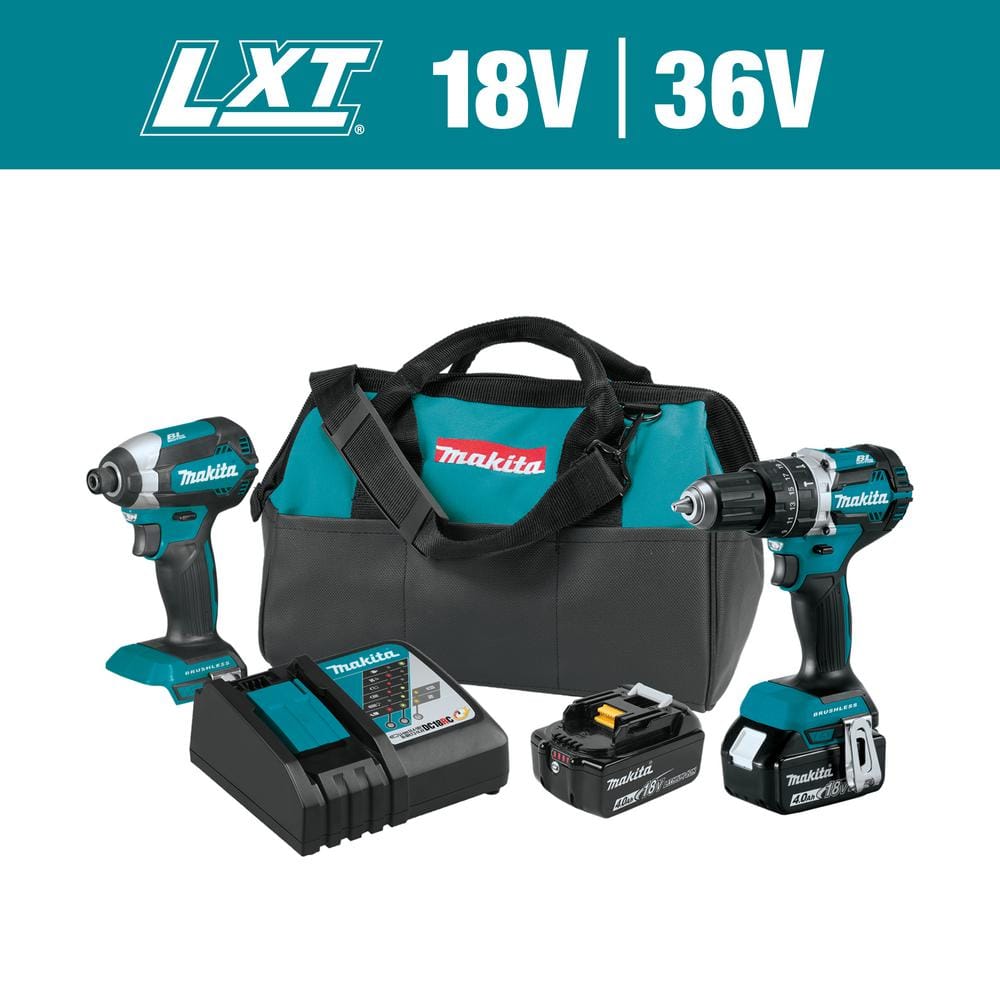 Makita 18V LXT Lithium-Ion Brushless Cordless Hammer Drill and Impact Driver Combo Kit (2-Tool) w/ (2) 4Ah Batteries, Bag