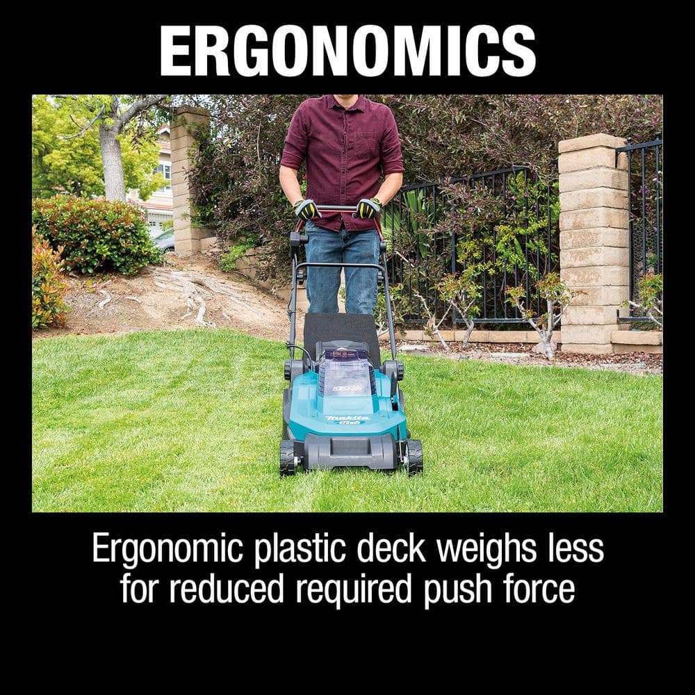 Makita 18V X2 (36V) LXT 17 in. Cordless Residential Lawn Mower Kit (5.0Ah) with bonus 18V LXT Floor Blower, Tool Only