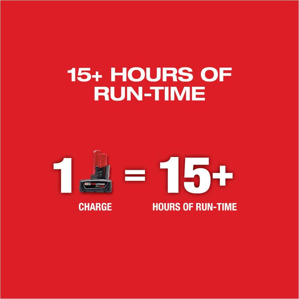 • Exceptional Battery Life: 15+ hours of runtime with M12 REDLITHIUM 4.0 XC Battery, keeping you productive all day.