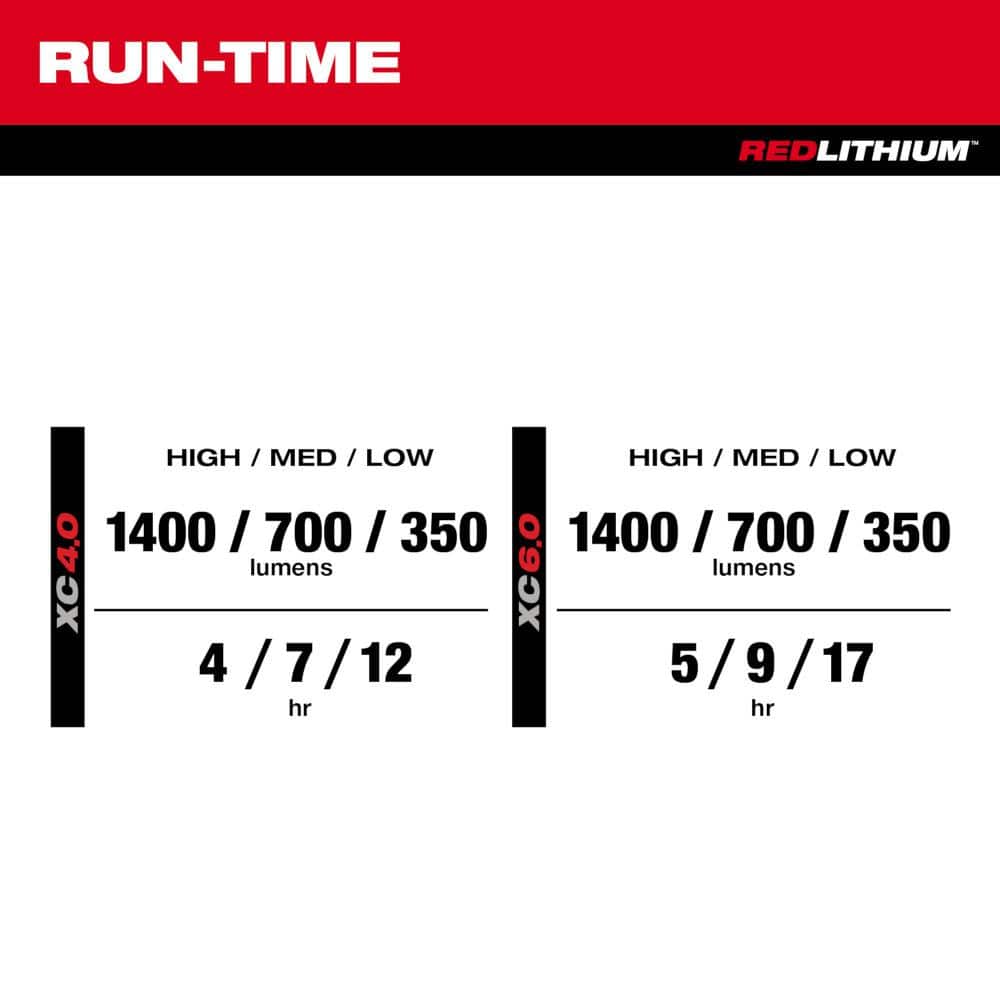 A: When used with a Milwaukee M12 XC 4.0 battery, the flood light provides up to 12 hours of runtime.