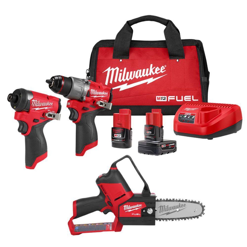 Milwaukee M12 FUEL 12-Volt Lithium-Ion Brushless Cordless Hammer Drill & Impact Driver Combo Kit with M12 FUEL 6" HATCHET Pruning Saw