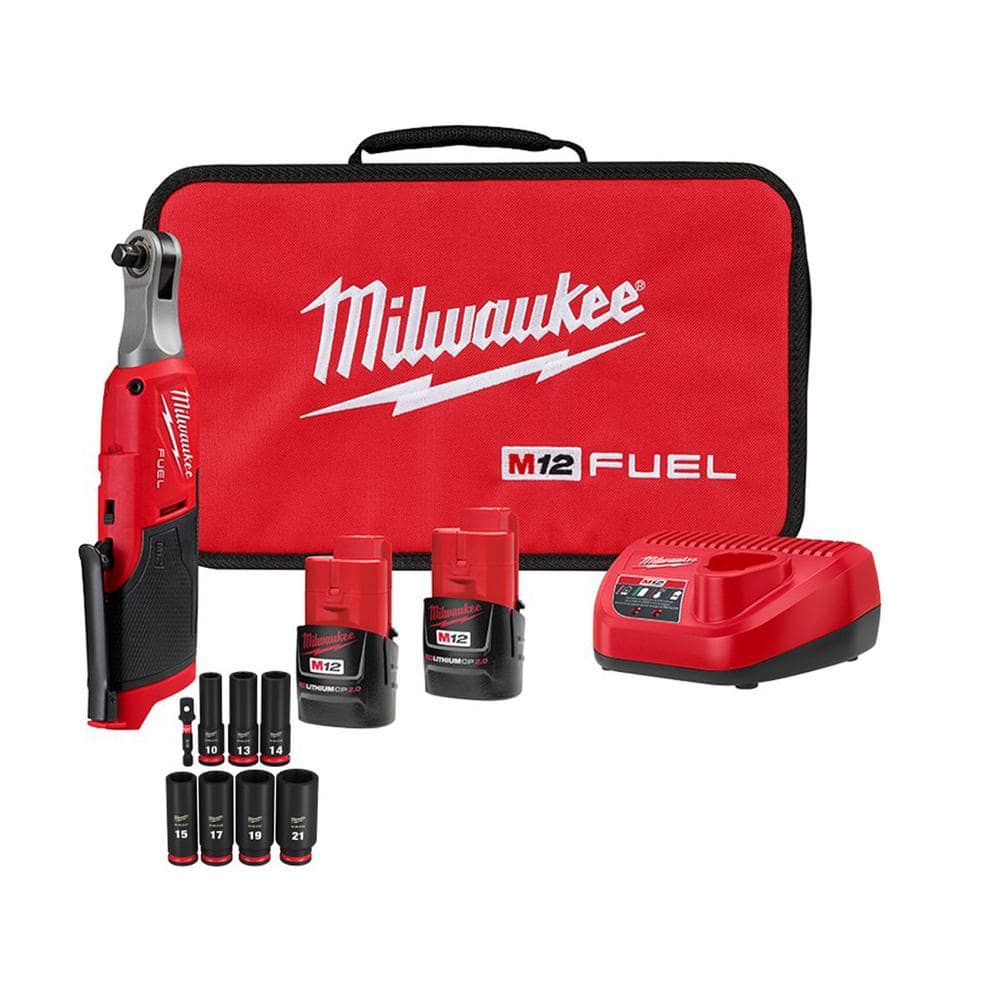 Elevate your productivity and embrace the powerful versatility of the Milwaukee M12 FUEL 12V Cordless 3/8 in. Ratchet Kit today!
