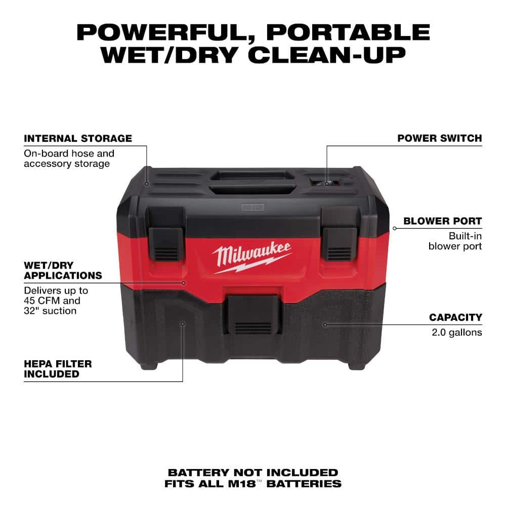 Milwaukee M18 FUEL 18V Lithium-Ion Brushless 1-1/8 in. Cordless SDS-Plus Rotary Hammer/Dust Extractor Kit W/Cordless Wet/Dry Vac