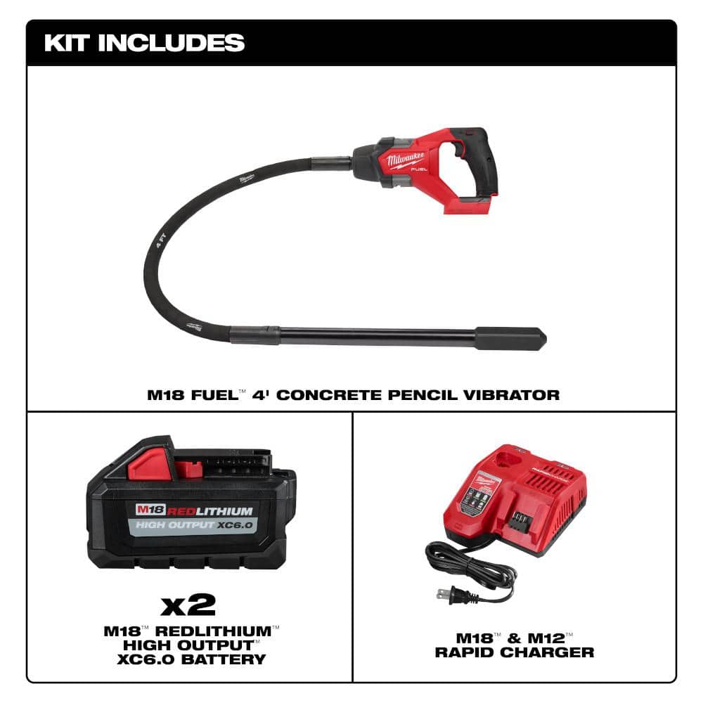 Milwaukee M18 FUEL 18V Lithium-Ion Brushless Cordless 4 ft. Concrete Pencil Vibrator Kit with (2) 6.0 Ah Battery
